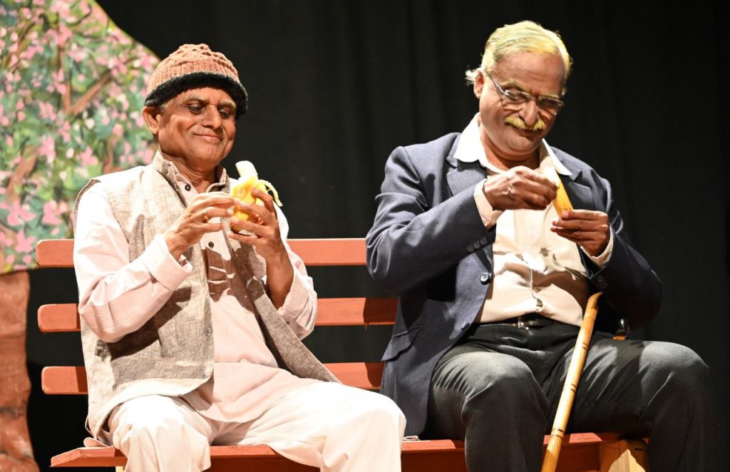 ಎಂಬತ್ತಾರರ ಗುರುನಾಥ, ಎಂಬತ್ತಮೂರರ ಕೃಷ್ಣಸ್ವಾಮಿಯವರ ಕತೆಯಿದು. ಅದರಲ್ಲಿ ಗುರುನಾಥ ದಿನಕ್ಕೊಂದು ರೂಪ ತೊಟ್ಟು ಸುಳ್ಳು ಹೇಳುತ್ತಾ, ಹೊಸ ಹೊಸ ಅವತಾರಗಳನ್ನು ತಾಳುತ್ತಾ ಹೋಗುತ್ತಾನೆ. ಅವನ ಮಾತನ್ನು ನಂಬಿದಂತೆ ನಟಿಸುತ್ತಾನೆ ಗುರುನಾಥ. ಸುಳ್ಳುಗಳನ್ನು ಹೇಳುವದು ಗುರುನಾಥನ ವೃತ್ತಿಯಾದರೆ, ಸುಳ್ಳುಗಳನ್ನು ಕೇಳುತ್ತಾ ಸಂಭ್ರಮಿಸುವದು ಕೃಷ್ಣಸ್ವಾಮಿಯ ಪ್ರವೃತ್ತಿಯಾಗಿರುತ್ತದೆ. ಪುರಂದರ ದಾಸರ ವಿಡಂಬನೆಯ ಕೀರ್ತನೆ ‘ಸುಳ್ಳು ನಮ್ಮಲ್ಲಿಲ್ಲವಯ್ಯಾ ಸುಳ್ಳೆ ನಮ್ಮನಿ ದೇವರು’ ಎಂಬುದು ಇವರಿಬ್ಬರ ಬದುಕು. ನಗರದ ಉದ್ಯಾನದ ಒಂದು ಬೆಂಚು ಇವರಿಬ್ಬರ ನಿತ್ಯ ಭೇಟಿಯ ಸ್ಥಳ. ಊರ ಮೊದಲೆ ಕೈಯಲ್ಲಿ ಒಂದು ಪೇಪರ ಹಿಡಿದುಕೊಂಡು ಓದುವ ನಟನೆ ಮಾಡುತ್ತ ಕುಳಿತುಕೊಳ್ಳುವ ಕೃಷ್ಣಸ್ವಾಮಿ, ಠಾಕ ಠೀಕಾಗಿ ಬಂದು ಸುಳ್ಳಿನ ಬುತ್ತಿಯನ್ನು ಬಿಚ್ವಿ ಇವನಿಗೂ ಸ್ವಲ್ಪ ಸ್ವಲ್ಪ ತಿನ್ನಲು ನೀಡುತ್ತ ಆತ್ಮ ರತಿಯಲ್ಲಿ ತೊಡಗಿಕೊಳ್ಳುತ್ತಿರುವವ ಗುರುನಾಥ. ಇವರಿಬ್ಬರ ಮಾತು – ಕತೆ ನವಿರಾದ ಹಾಸ್ಯದಿಂದ ಕೂಡಿತ್ತು. ಇದು ಪ್ರೇಕ್ಷಕರಿಗೆ ಅತ್ಯುತ್ತಮ ಮನರಂಜನೆ ನೀಡಿತು. ನಾಟಕದಲ್ಲಿ ಗುರುನಾಥನಾಗಿ ಶ್ರೀ ಸುನೀಲ್ ಪತ್ರಿ, ಕೃಷ್ಣಸ್ವಾಮಿಯಾಗಿ ಶ್ರೀ ವೀರಣ್ಣ ಹೊಸಮನಿ ಅತ್ಯುತ್ತಮವಾಗಿ ಅಭಿನಯಿಸಿದರು. ನಾಟಕದ ಒಟ್ಟಾರೆ ಜೀವಂತಿಕೆಗೆ ಇವರಿಬ್ಬರ ಒಟ್ಟಾರೆ ನಟನೆ ಸಮರ್ಪಕ ಮತ್ತು ಪೂರಕವಾಗಿತ್ತು.
