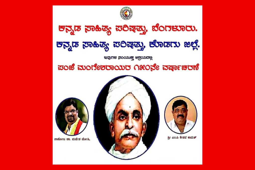 ಮಡಿಕೇರಿ : ಕನ್ನಡ ಸಾಹಿತ್ಯ ಪರಿಷತ್ತು ಬೆಂಗಳೂರು ಮತ್ತು ಕನ್ನಡ ಸಾಹಿತ್ಯ ಪರಿಷತ್ತು ಕೊಡಗು ಜಿಲ್ಲೆ ಇವುಗಳ ಸಂಯುಕ್ತ ಆಶ್ರಯದಲ್ಲಿ ಕನ್ನಡ ಸಾರಸ್ವತ ಲೋಕದಲ್ಲಿ ಸಾಹಿತ್ಯ ಕೃಷಿಯ ಮೂಲಕ ಶಾಶ್ವತ ಸ್ಥಾನ ಪಡೆದ, ಕೊಡಗಿನ ವಿಶಿಷ್ಟ ಸಂಸ್ಕೃತಿಯನ್ನು ತಮ್ಮ ಹುತ್ತರಿ ಹಾಡಿನ ಮೂಲಕ ಕಟ್ಟಿಕೊಟ್ಟ ಹಿರಿಯ ಚೇತನ ‘ಪಂಜೆ ಮಂಗೇಶರಾಯರ 150ನೇ ವರ್ಷಾಚರಣೆ’ಯು ದಿನಾಂಕ 20 ಫೆಬ್ರವರಿ 2025ರಂದು ಬೆಳಿಗ್ಗೆ 10-00 ಗಂಟೆಗೆ ಕೊಡಗು ಜಿಲ್ಲೆ ಮಡಿಕೇರಿಯ ಸರಕಾರಿ ಪ್ರಥಮ ದರ್ಜೆ ಕಾಲೇಜು ಸಭಾಂಗಣದಲ್ಲಿ ನಡೆಯಲಿದೆ.