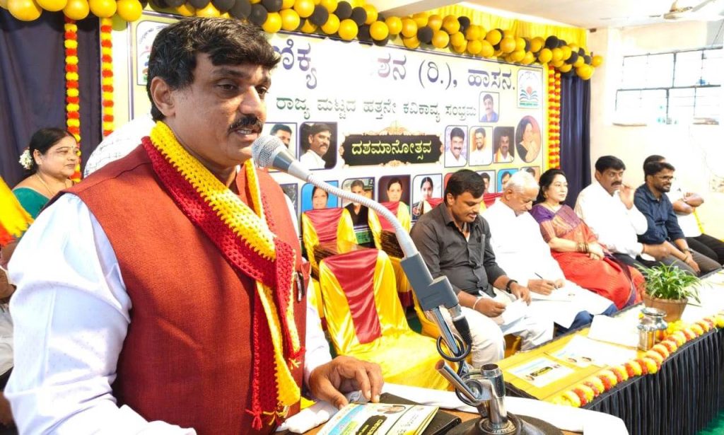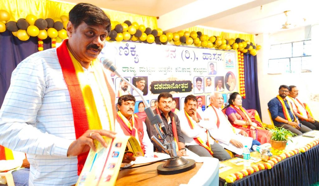ಹಾಸನ : ಮಾಣಿಕ್ಯ ಪ್ರಕಾಶನದಿಂದ ದಿನಾಂಕ 02 ನವೆಂಬರ್ 2025ರಂದು ಹಾಸನದ ಸಂಸ್ಕೃತ ಭವನದಲ್ಲಿ ಹಮಿಕೊಂಡಿದ್ದ ರಾಜ್ಯ ಮಟ್ಟದ 10ನೇ ಕವಿಕಾವ್ಯ ಸಂಭ್ರಮ, ಕನ್ನಡ ರಾಜ್ಯೋತ್ಸವ ಹಾಗೂ ದಶಮಾನೋತ್ಸವ ಕಾರ್ಯಕ್ರಮ ಉದ್ಘಾಟನೆಗೊಂಡಿತು.