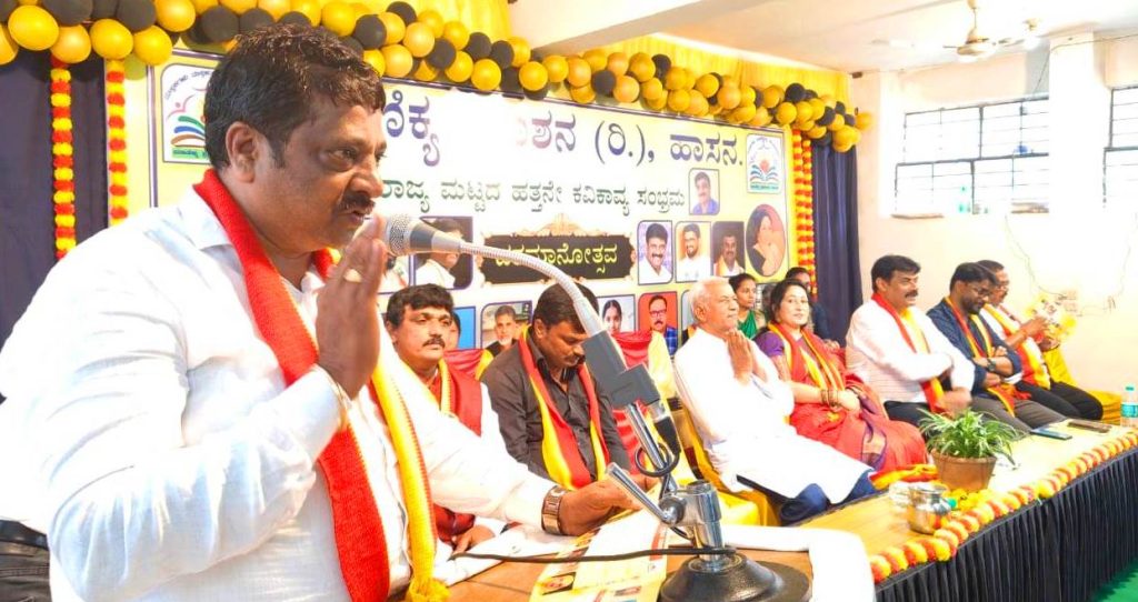 ಹಾಸನ : ಮಾಣಿಕ್ಯ ಪ್ರಕಾಶನದಿಂದ ದಿನಾಂಕ 02 ನವೆಂಬರ್ 2025ರಂದು ಹಾಸನದ ಸಂಸ್ಕೃತ ಭವನದಲ್ಲಿ ಹಮಿಕೊಂಡಿದ್ದ ರಾಜ್ಯ ಮಟ್ಟದ 10ನೇ ಕವಿಕಾವ್ಯ ಸಂಭ್ರಮ, ಕನ್ನಡ ರಾಜ್ಯೋತ್ಸವ ಹಾಗೂ ದಶಮಾನೋತ್ಸವ ಕಾರ್ಯಕ್ರಮ ಉದ್ಘಾಟನೆಗೊಂಡಿತು.