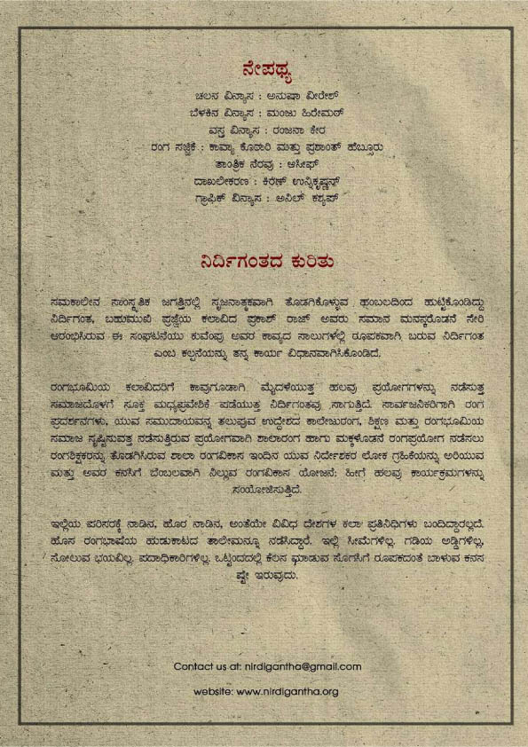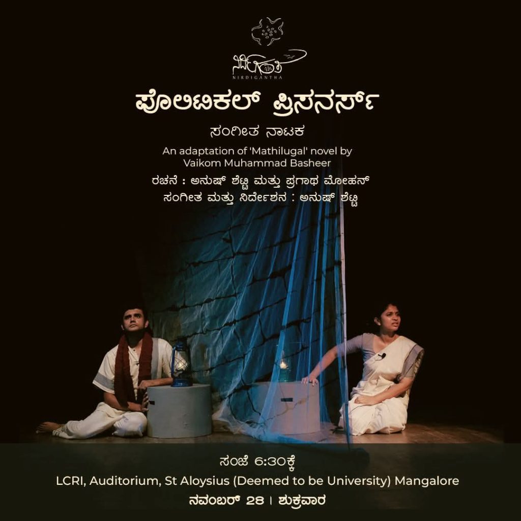 ಮಂಗಳೂರು : ಅಸ್ತಿತ್ವ (ರಿ.) ಮಂಗಳೂರು ಪ್ರಸ್ತುತಪಡಿಸುವ ನಾಟಕೋತ್ಸವದ ಎರಡನೇ ದಿನ ದಿನಾಂಕ 28 ನವೆಂಬರ್ 2025ರಂದು ಸಂಜೆ 6-30 ಗಂಟೆಗೆ ಮೈಸೂರಿನ ನಿರ್ದಿಗಂತ ತಂಡದವರು ಅಭಿನಯಿಸುವ ‘ಪೊಲಿಟಿಕಲ್ ಪ್ರಿಸನರ್ಸ್’ ಸಂಗೀತ ನಾಟಕವು ಸಂತ ಅಲೋಶಿಯಸ್ (ಪರಿಗಣಿತ) ವಿಶ್ವವಿದ್ಯಾಲಯದ ಎಲ್.ಸಿ.ಆರ್.ಐ. ಸಭಾಂಗಣದಲ್ಲಿ ನಡೆಯಲಿದೆ. ಅನುಷ್ ಶೆಟ್ಟಿಯವರು ಸಂಗೀತ ಮತ್ತು ನಿರ್ದೇಶನ ಮಾಡಲಿದ್ದು, ಯಾವುದೇ ಸಭಾ ಕಾರ್ಯಕ್ರಮವಿರುವುದಿಲ್ಲ, ನಾಟಕ ಸರಿಯಾದ ಸಮಯಕ್ಕೆ ಆರಂಭವಾಗುತ್ತದೆ.