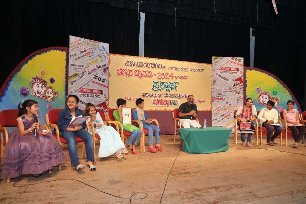 ಬೆಂಗಳೂರು : ವಿಜಯನಗರ ಬಿಂಬ ರಂಗಶಿಕ್ಷಣ ಕೇಂದ್ರ ಮಕ್ಕಳ ವಿಭಾಗ ಚಿಣ್ಣರ ಚಾವಡಿ -2024 ಅರ್ಪಿಸುವ ‘ಪ್ರಶ್ನಾರ್ಥ’ ಪುಟಾಣಿ ಮಕ್ಕಳ ಚೊಟಾಣಿ ಪತ್ರಿಕಾಗೋಷ್ಠಿಯ ಮೀಡಿಯಾ ಹಬ್ಬದ ಕಾರ್ಯಕ್ರಮವು ದಿನಾಂಕ 27-04-2024ರಂದು ಕಲಾಗ್ರಾಮದಲ್ಲಿ ನಡೆಯಿತು. ಮುಖ್ಯ ಅತಿಥಿಯಾಗಿ ಕಾರ್ಯಕ್ರಮಕ್ಕೆ ಮೆರುಗು ಕೊಟ್ಟವರು ಸುವರ್ಣ ವಾಹಿನಿಯ ಅಜಿತ್ ಹನುಮಕ್ಕನವರ್. ಪುಟಾಣಿ ಪತ್ರಕರ್ತರಿಂದ ಬಾಲ್ಯ, ವಿದ್ಯೆ, ಸಾಂಸಾರಿಕ, ವೃತ್ತಿ, ವೃತ್ತಿಯಲ್ಲಿನ ಇರಿಸುಮರಿಸು, ಸಂದಿಗ್ಧತೆ, ಸವಾಲು ಹೀಗೆ ಹತ್ತು ಹಲವು ಪ್ರಶ್ನೆಗಳ ಬಾಣ ಅಜಿತ್ ಅವರಿಗೆ. ಅಷ್ಟೇ ಸಂಯಮದಿಂದ ಚಾಚೂ ತಪ್ಪದೆ ಮಕ್ಕಳಲ್ಲಿ ಮಕ್ಕಳಾಗಿ ಮನವರಿಕೆಯ ಉತ್ತರ ಅವರ ವೃತ್ತಿಯಲ್ಲಿನ ಅನುಭವಕ್ಕೆ ಹಿಡಿದ ಕನ್ನಡಿ. ಪತ್ರಕರ್ತರ ಅನುಭವ ಮತ್ತು ಸವಾಲುಗಳಿಗೆ ಉತ್ತರ ನೀಡುವಾಗ ಇದ್ದ ಪ್ರೌಡಿಮೆ ಮತ್ತು ಅಲ್ಲಲ್ಲಿ ಹಾಸ್ಯಮಯವಾಗಿಯೆ ಉತ್ತರಿಸಿದ್ದು ಎಲ್ಲರ ಮೆಚ್ಚುಗೆಗೆ ಪಾತ್ರವಾಯಿತು.