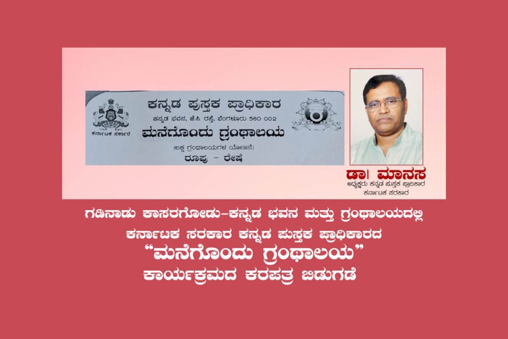 ಕಾಸರಗೋಡು : ಕಾಸರಗೋಡು ಸೀತಮ್ಮ ಪುರುಷನಾಯಕ ಸ್ಮಾರಕ ಕನ್ನಡ ಭವನ ಮತ್ತು ಗ್ರಂಥಾಲಯದಲ್ಲಿ ದಿನಾಂಕ 02 ಫೆಬ್ರವರಿ 2025 ರಂದು ಅಪರಾಹ್ನ 1-00 ಗಂಟೆಗೆ ಕನ್ನಡ ಪುಸ್ತಕ ಪ್ರಾಧಿಕಾರದ ಬಹುನಿರೀಕ್ಷಿತ ‘ಮನೆಗೊಂದು ಗ್ರಂಥಾಲಯ’ ಲಕ್ಷ ಗ್ರಂಥಾಲಯಗಳ ಯೋಜನೆಯ ಪ್ರಚಾರ ಹಾಗೂ ಕರಪತ್ರ ಬಿಡುಗಡೆ ಕಾರ್ಯಕ್ರಮ ನಡೆಯಲಿದೆ.