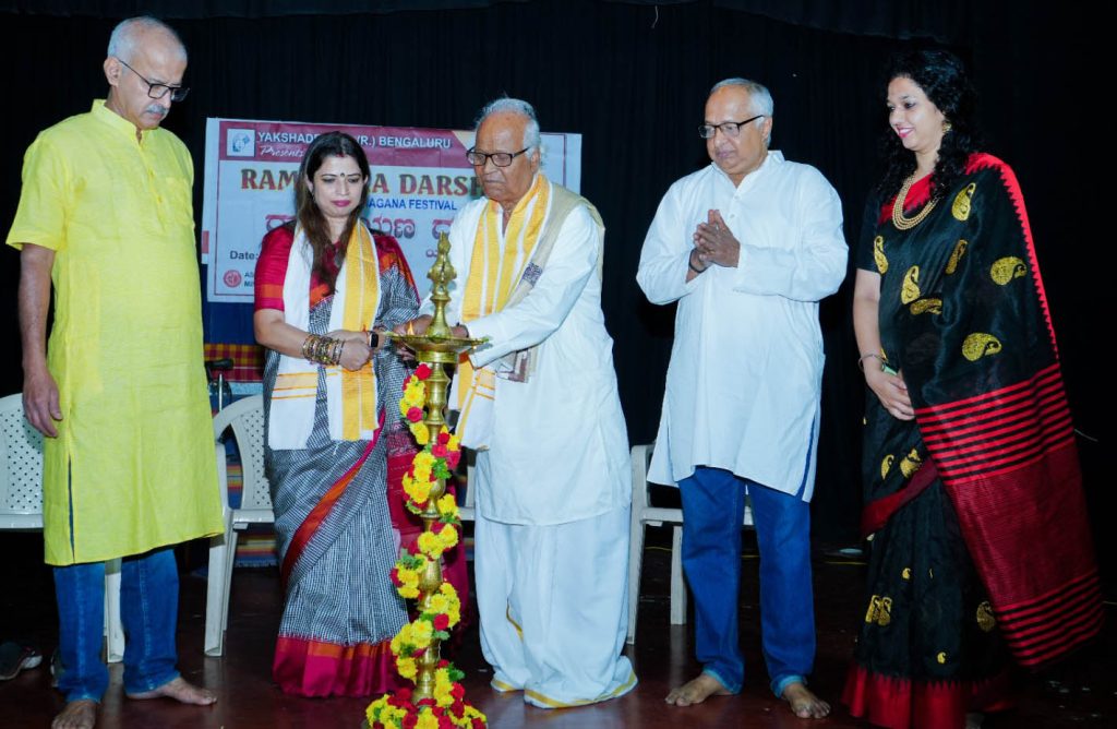 ಬೆಂಗಳೂರು : ಬೆಂಗಳೂರಿನಲ್ಲಿ ಕಳೆದ 45 ವರ್ಷಗಳಿಂದ ಸದಾ ಚಟುವಟಿಕೆಯಿಂದಿರುವ ಹಾಗೂ ಗುಣಾತ್ಮಕ ಯಕ್ಷಗಾನ ಪ್ರದರ್ಶನ ನೀಡುತ್ತಾ ಬಂದಿರುವ ಯಕ್ಷದೇಗುಲ ತಂಡದ ವತಿಯಿಂದ ಕೇಂದ್ರ ಸಂಸ್ಕೃತಿ ಇಲಾಖೆಯ ಸಹಕಾರದಲ್ಲಿ ದಿನಾಂಕ 5 ಅಕ್ಟೋಬರ್ 2024ರಂದು ಬೆಂಗಳೂರಿನ ಗವಿಪುರಂನ ಉದಯಭಾನು ಸಭಾಂಗಣದಲ್ಲಿ ರಾಮಾಯಣ ದರ್ಶನದ ಯಕ್ಷಗಾನ ಉತ್ಸವವು ನಡೆಯಿತು. ಶಿಕ್ಷಾಲೋಕಮ್ ಮ್ಯಾನೇಜರ್ ಶ್ರೀವಾತ್ಸವ್ ಮತ್ತು ಹಿರಿಯ ಯಕ್ಷಗಾನ ಕಲಾವಿದರಾದ ಹೆರಂಜಾಲ್ ಸುಬ್ಬಣ್ಣ ಗಾಣಿಗ ಇವರುಗಳು ದೀಪ ಬೆಳಗಿಸುವ ಮೂಲಕ ಈ ಕಾರ್ಯಕ್ರಮಕ್ಕೆ ಚಾಲನೆ ನೀಡಿದರು. ನಂತರ ಹಿರಿಯ ಮತ್ತು ಯುವ ಕಲಾವಿದರ ಕೂಡುವಿಕೆಯಲ್ಲಿ ಪಾರ್ಥಿ ಸುಬ್ಬ ವಿರಚಿತ ‘ಭರತಾಗಮನ’ ತಾಳಮದ್ದಲೆ ನಡೆಯಿತು. ನಂತರ ಯಕ್ಷದೇಗುಲ ಮಕ್ಕಳ ತಂಡದಿಂದ ಪ್ರಿಯಾಂಕ ಕೆ. ಮೋಹನ್ ನಿರ್ದೇಶನದಲ್ಲಿ ಪ್ರೊ. ಪವನ್ ಕಿರಣಕೆರೆ ಪರಿಕಲ್ಪನೆಯ ‘ಕೃಷ್ಣಂ ವಂದೇ ಜಗದ್ಗುರುಂ’ ಎಂಬ ಯಕ್ಷಗಾನ ಪ್ರದರ್ಶನ ನಡೆಯಿತು.