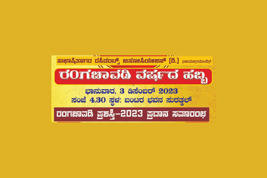 ಸುರತ್ಕಲ್ : ರಂಗಚಾವಡಿ ಮಂಗಳೂರು ಸಾಹಿತ್ಯಿಕ ಸಾಂಸ್ಕೃತಿಕ ಸಂಘಟನೆ ಮಂಗಳೂರು ಇದರ ಆಶ್ರಯದಲ್ಲಿ ಸುಭಾಷಿತ ನಗರ ರೆಸಿಡೆಂಟ್ಸ್ ವೆಲ್ ಫೇರ್ ಅಸೋಸಿಯೇಶನ್ (ರಿ) ಸುರತ್ಕಲ್ ಇವರ ಸಹಯೋಗದೊಂದಿಗೆ ‘ರಂಗಚಾವಡಿ ವರ್ಷದ ಹಬ್ಬ’ ಮತ್ತು ‘ರಂಗಚಾವಡಿ ಪ್ರಶಸ್ತಿ 2023’ ಪ್ರದಾನ ಸಮಾರಂಭ ದಿನಾಂಕ 03-12-2023ರಂದು ಭಾನುವಾರ ಸಂಜೆ 4.30ಕ್ಕೆ ಸುರತ್ಕಲ್ ಬಂಟರ ಭವನದಲ್ಲಿ ನಡೆಯಲಿದೆ.