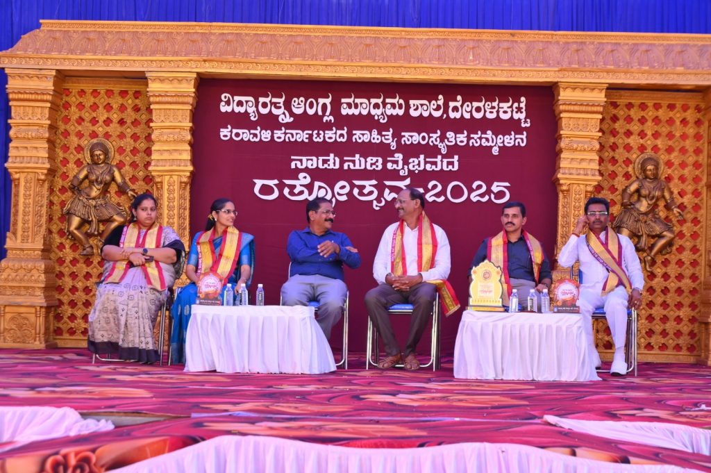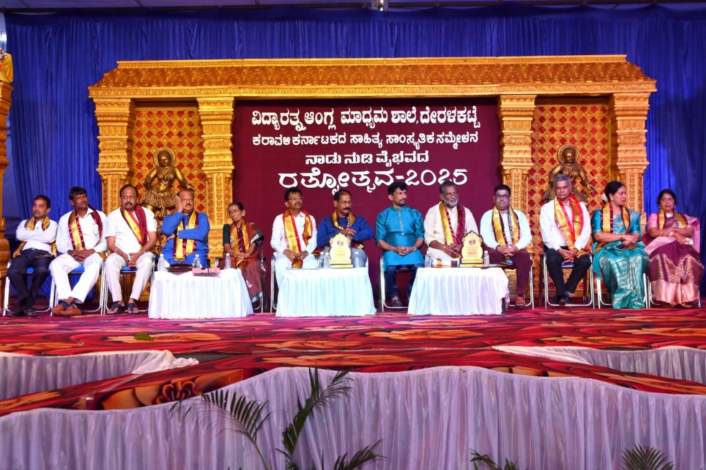 ಕೋಣಾಜೆ : ದೇರಳಕಟ್ಟೆಯ ವಿದ್ಯಾರತ್ನ ಆಂಗ್ಲ ಮಾಧ್ಯಮ ಶಾಲೆಯ ದೇರಳಕಟ್ಟೆ ಗ್ರೀನ್ ಗೌಂಡ್ ನ ಡಾ. ವಾಮನ ನಂದಾವರ ಸಭಾಂಗಣದ ಡಾ. ಪಾಲ್ತಾಡಿ ರಾಮಕೃಷ್ಣ ಆಚಾರ್ ವೇದಿಕೆಯಲ್ಲಿ ವಿದ್ಯಾರತ್ನ ಆಂಗ್ಲ ಮಾಧ್ಯಮ ಶಾಲೆಯ ಆಶ್ರಯದಲ್ಲಿ ಕರಾವಳಿ ಕರ್ನಾಟಕದ ಸಾಹಿತ್ಯ-ಸಾಂಸ್ಕೃತಿಕ ಸಮ್ಮೇಳನ ನಾಡು ನುಡಿ ವೈಭವದ ‘ರತ್ನೋತ್ಸವ 2025’ ದಿನಾಂಕ 20 ಡಿಸೆಂಬರ್ 2025ರಂದು ನಡೆಯಿತು.