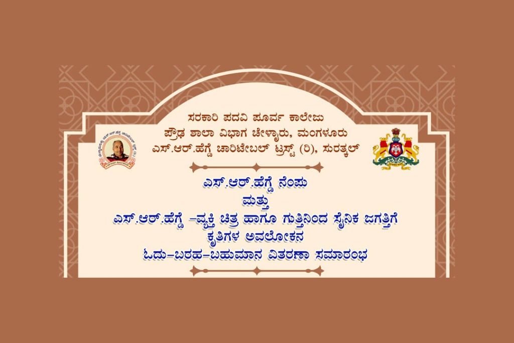 ಮಂಗಳೂರು : ಎಸ್. ಆರ್. ಹೆಗ್ಡೆ ಚಾರಿಟೇಬಲ್ ಟ್ರಸ್ಟ್ (ರಿ.) ಸುರತ್ಕಲ್ ಇವರು ಸರಕಾರಿ ಪದವಿ ಪೂರ್ವ ಕಾಲೇಜು ಪ್ರೌಢ ಶಾಲಾ ವಿಭಾಗ ಚೇಳಾಯ್ರು ಇದರ ಸಹಯೋಗದಲ್ಲಿ ಆಯೋಜಿಸುವ ಎಸ್. ಆರ್. ಹೆಗ್ಡೆ ನೆಂಪು ಮತ್ತು ಎಸ್. ಆರ್. ಹೆಗ್ಡೆ -ವ್ಯಕ್ತಿ ಚಿತ್ರ ಹಾಗೂ ‘ಗುತ್ತಿನಿಂದ ಸೈನಿಕ ಜಗತ್ತಿಗೆ’ ಕೃತಿಗಳ ಅವಲೋಕನ, ಓದು-ಬರಹ-ಬಹುಮಾನ ವಿತರಣಾ ಸಮಾರಂಭವು 30 ಆಗಸ್ಟ್ 2024ರಂದು ಚೇಳಾಯ್ರು ಸರಕಾರಿ ಪದವಿ ಪೂರ್ವ ಕಾಲೇಜು ಆವರಣದಲ್ಲಿ ನಡೆಯಲಿದೆ.