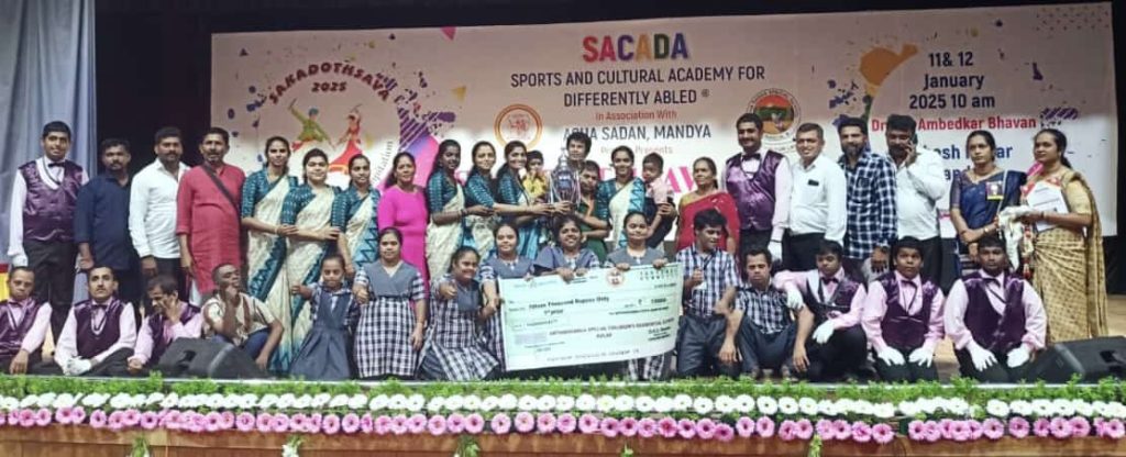ಮಂಡ್ಯ : ಮಂಡ್ಯದ ಸ್ಪೋರ್ಟ್ಸ್ ಆಂಡ್ ಕಲ್ಚರಲ್ ಅಕಾಡೆಮಿ ಫಾರ್ ಡಿಫರೆಂಟ್ಲಿ ಏಬಲ್ಡ್ (ರಿ.) (ಸಕಾಡ) ಹಾಗೂ ಮಂಡ್ಯ ಜಿಲ್ಲೆಯ ಆಶಾಸದನ ವಿಶೇಷ ಶಾಲೆಯ ಸಹಯೋಗದೊಂದಿಗೆ ಆಯೋಜಿಸಿದ ‘ಸಕಾಡೋತ್ಸವ-2025’ ಭಿನ್ನ ಸಾಮರ್ಥ್ಯದ ಮಕ್ಕಳ ರಾಜ್ಯಮಟ್ಟದ ಜನಪದ ನೃತ್ಯ ಸ್ಪರ್ಧೆ ಕಾರ್ಯಕ್ರಮವು ದಿನಾಂಕ 11 ಮತ್ತು 12 ಜನವರಿ 2025 ರಂದು ಮಂಡ್ಯ ಜಿಲ್ಲೆಯ ಸುಭಾಷ್ನಗರದಲ್ಲಿರುವ ಡಾ. ಬಿ. ಆರ್. ಅಂಬೇಡ್ಕರ್ ಸಭಾಭವನದಲ್ಲಿ ನಡೆಯಿತು.