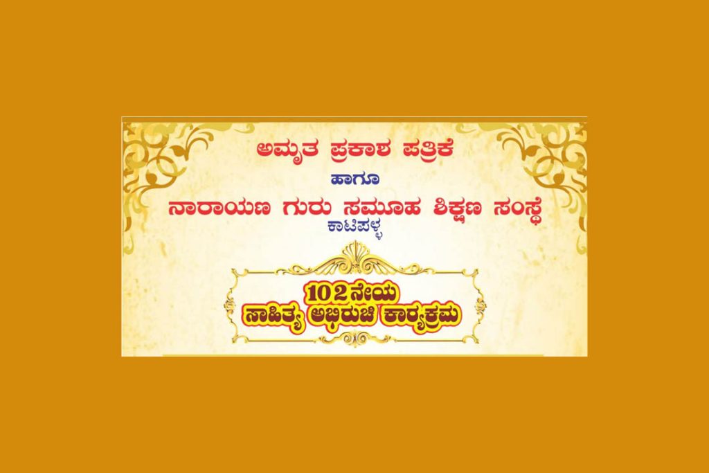 ಮಂಗಳೂರು : ಅಮೃತ ಪ್ರಕಾಶ ಪತ್ರಿಕೆ ಹಾಗೂ ನಾರಾಯಣ ಗುರು ಸಮೂಹ ಶಿಕ್ಷಣ ಸಂಸ್ಥೆ ಕಾಟಿಪಳ್ಳ ಇದರ ವತಿಯಿಂದ 102ನೆಯ ‘ಸಾಹಿತ್ಯ ಅಭಿರುಚಿ ಕಾರ್ಯಕ್ರಮ’ವನ್ನು ದಿನಾಂಕ 31 ಆಗಸ್ಟ್ 2024ರಂದು ಮಧ್ಯಾಹ್ನ 2-30 ಗಂಟೆಗೆ ಕಾಟಿಪಳ್ಳದ ನಾರಾಯಣ ಗುರು ಆಂಗ್ಲ ಮಾಧ್ಯಮ ಶಾಲೆಯಲ್ಲಿ ಹಮ್ಮಿಕೊಳ್ಳಲಾಗಿದೆ.