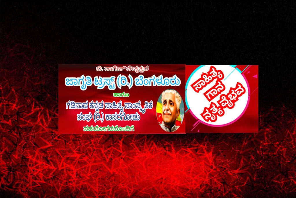 ಕುಪ್ಪಳ್ಳಿ : ಬಿ. ನಾಗೇಶ್ ನೇತೃತ್ವದ ಜಾಗೃತಿ ಟ್ರಸ್ಟ್ (ರಿ.) ಬೆಂಗಳೂರು ಹಾಗೂ ಗಡಿನಾಡ ಕನ್ನಡ ಸಾಹಿತ್ಯ ಸಾಂಸ್ಕೃತಿಕ ಸಂಘ (ರಿ.) ಕಾಸರಗೋಡು ಇವುಗಳ ಸಹಯೋಗದೊಂದಿಗೆ ‘ಸಾಹಿತ್ಯ ಗಾನ ನೃತ್ಯ ವೈಭವ’ ಕಾರ್ಯಕ್ರಮವನ್ನು ದಿನಾಂಕ 21-07-2024ರಂದು ಬೆಳಿಗ್ಗೆ ಗಂಟೆ 9-30 ಕ್ಕೆ ಕುಪ್ಪಳ್ಳಿಯ ಪೀಠ ಪ್ರಶಸ್ತಿ ಪುರಸ್ಕೃತ ರಾಷ್ಟ್ರಕವಿ ಕುವೆಂಪುರವರ ಮನೆಯಲ್ಲಿ ಹಮ್ಮಿಕೊಳ್ಳಲಾಗಿದೆ. ಈ ಕಾರ್ಯಕ್ರಮದಲ್ಲಿ ಸಾಹಿತ್ಯ, ಸಾಂಸ್ಕೃತಿಕ, ಪುಸ್ತಕ ಬಿಡುಗಡೆ ಮತ್ತು ಕವಿಗೋಷ್ಠಿಗಳನ್ನು ಆಯೋಜಿಸಲಾಗಿದೆ.