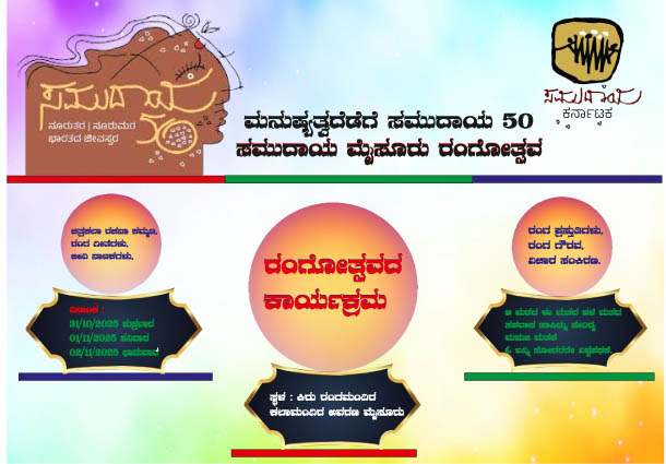 ಮೈಸೂರು ಕಿರು ರಂಗಮಂದಿರದಲ್ಲಿ ‘ಸಮುದಾಯ ಮೈಸೂರು ರಂಗೋತ್ಸವ’ | ಅಕ್ಟೋಬರ್ 31, ನವೆಂಬರ್ 1 ಮತ್ತು 2
