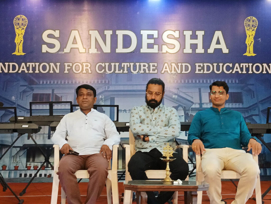 Fr. Sudeep Paul, Director, Sandesha foundation for Culture and activities welcomed all to the gathering and explained the vision and mission of Sandesha. He also applauded the efforts of the students and encouraged the budding artists to trudge distinct ways to develop their talent for their holistic growth in future ahead. He said that Sandesha aims to build value based society and creating harmony through encouraging and supporting the art, culture, education and folklore related activities. He also spoke on the importance of music and dance gave examples of distinguished alumni of Sandesha such as Cajetan Dias, Sandeep Ballal etc.