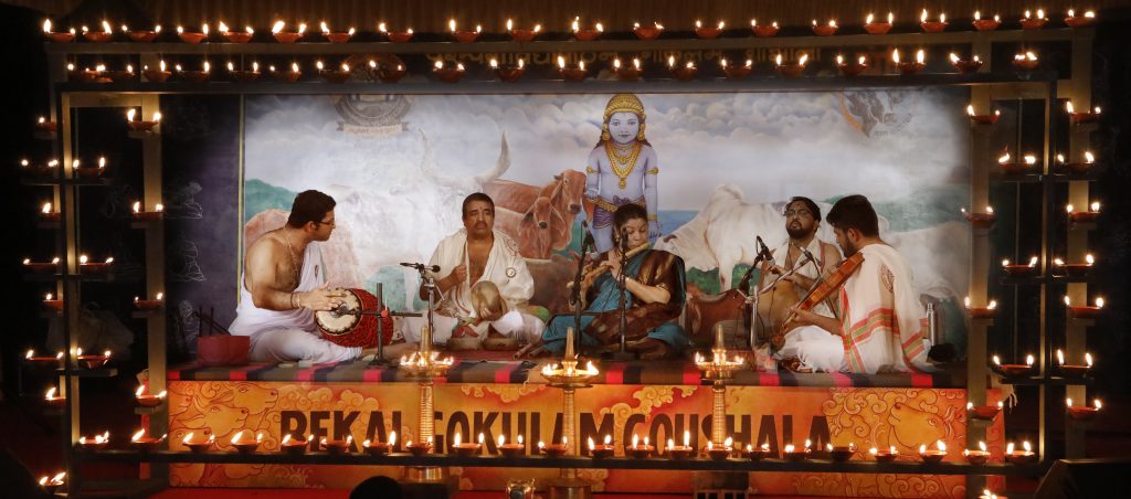 ಪೆರಿಯ : ಬೇಕಲ ಗೋಕುಲಂ ಗೋಶಾಲೆಯಲ್ಲಿ ನಡೆಯುತ್ತಿರುವ ಐದನೇಯ ದೀಪಾವಳಿ ಸಂಗೀತೋತ್ಸವವು ಖ್ಯಾತ ಕೊಳಲು ವಾದಕಿ ಶಾಂತಲಾ ಸುಬ್ರಮಣ್ಯಂ ಇವರಿಂದ ದೀಪಾಲಂಕೃತದಿಂದ ಪ್ರಕಾಶಿತವಾದ ನಂದಿ ಮಂಟಪದಲ್ಲಿ ದಿನಾಂಕ 29 ಅಕ್ಟೋಬರ್ 2025ರಂದು ಮಂದಾರಿ ರಾಗದ ವರ್ಣದೊಂದಿಗೆ ಸಂಗೀತ ಕಾರ್ಯಕ್ರಮದೊಂದಿಗೆ ಆರಂಭಗೊಂಡಿತು. ಸುಧಾ ಧನ್ಯಾಸಿ, ಆರಭಿ, ನವರಸ ಕಾನದ, ಚಂದ್ರ ಜ್ಯೋತಿ, ಕಲ್ಯಾಣ ವಸಂತ ರಾಗಗಳನ್ನು ಹಾಡಲಾಯಿತು.