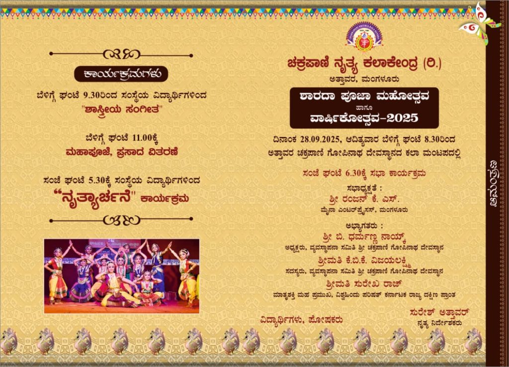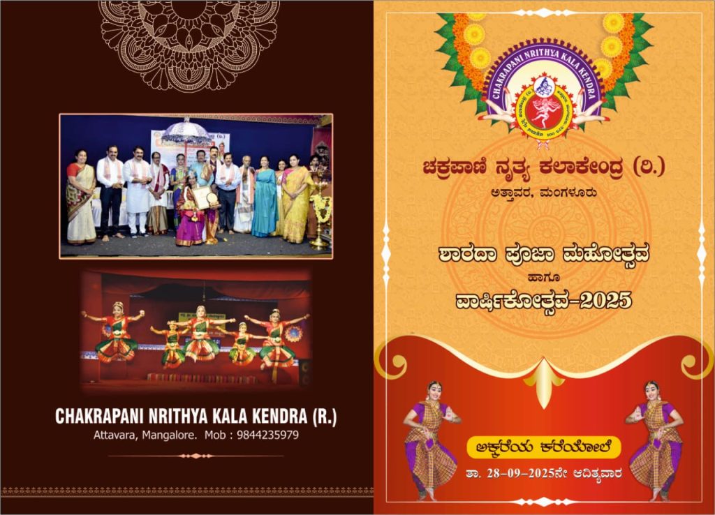 ಚಕ್ರಪಾಣಿ ನೃತ್ಯ ಕಲಾಕೇಂದ್ರದ ಶಾರದಾ ಪೂಜಾ ಮಹೋತ್ಸವ ಮತ್ತು ವಾರ್ಷಿಕೋತ್ಸವ | ಸೆಪ್ಟೆಂಬರ್ 28