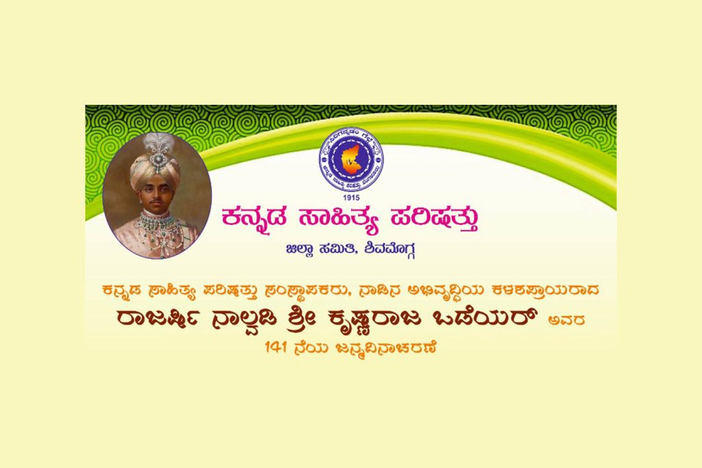 ಶಿವಮೊಗ್ಗ : ಕನ್ನಡ ಸಾಹಿತ್ಯ ಪರಿಷತ್ತು ಜಿಲ್ಲಾ ಸಮಿತಿ ಶಿವಮೊಗ್ಗ ಇದರ ವತಿಯಿಂದ ಕನ್ನಡ ಸಾಹಿತ್ಯ ಪರಿಷತ್ತು ಸಂಸ್ಥಾಪಕರು ನಾಡಿನ ಅಭಿವೃದ್ಧಿಯ ಕಳಶಪ್ರಾಯರಾದ ರಾಜರ್ಷಿ ನಾಲ್ವಡಿ ಶ್ರೀ ಕೃಷ್ಣರಾಜ ಒಡೆಯರ್ ಇವರ 141 ನೆಯ ಜನ್ಮದಿನಾಚರಣೆಯನ್ನು ದಿನಾಂಕ 04 ಜೂನ್ 2025ರಂದು ಬೆಳಿಗ್ಗೆ 11-00 ಗಂಟೆಗೆ ಶಿವಮೊಗ್ಗದ ಸರ್ಕಾರಿ ಪದವಿ ಪೂರ್ವ ಕಾಲೇಜಿನಲ್ಲಿ ಹಮ್ಮಿಕೊಳ್ಳಲಾಗಿದೆ.