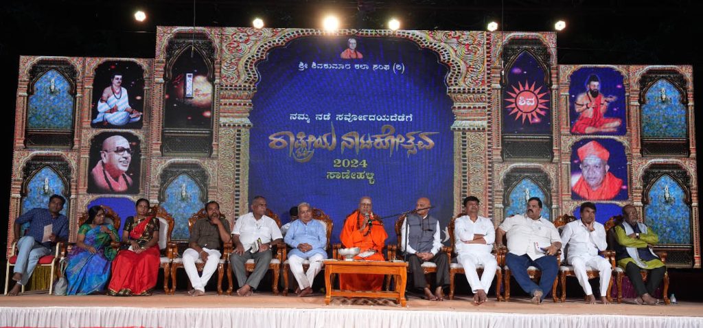 ಸಾಣೇಹಳ್ಳಿ : ಶ್ರೀ ಶಿವಕುಮಾರ ಕಲಾ ಸಂಘದ ವತಿಯಿಂದ ಆಯೋಜಿಸಲಾಗಿದ್ದ ‘ರಾಷ್ಟ್ರೀಯ ನಾಟಕೋತ್ಸವ’ದ ಸಮಾರೋಪ ಮತ್ತು ಶ್ರೀ ಶಿವಕುಮಾರ ಪ್ರಶಸ್ತಿ ಪ್ರದಾನ ಕಾರ್ಯಕ್ರಮವು ದಿನಾಂಕ 09 ನವೆಂಬರ್ 2024ರಂದು ಶ್ರೀ ಶಿವಕುಮಾರ ಬಯಲು ರಂಗಮಂದಿರದಲ್ಲಿ ಜರಗಿತು.