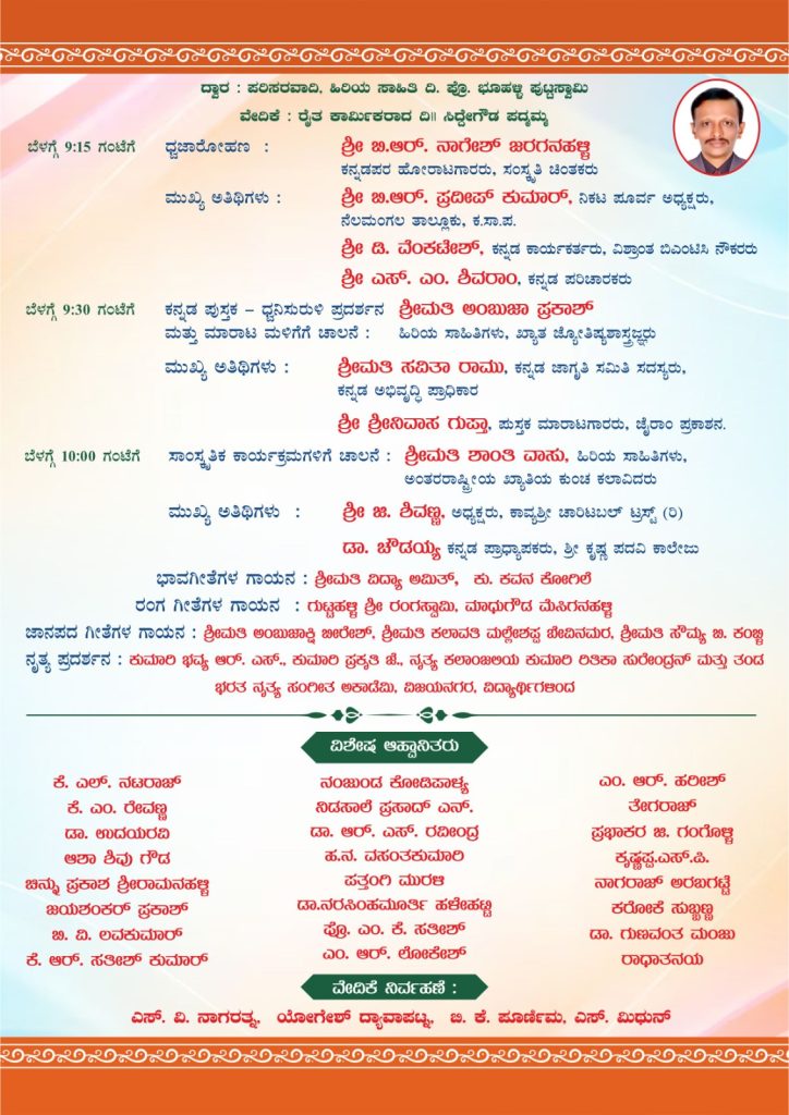 ಕೃಷಿ ತಜ್ಞ, ಸಾಹಿತಿ ಡಾ. ಶರತ್ಚಂದ್ರ ಜಿ. ರಾನಡೆ ಅವರು ಬಿ. ಶೃಂಗೇಶ್ವರ, ಸಿದ್ಧರಾಮ ಕಲ್ಮಠ, ರಾಮಕೃಷ್ಣಯ್ಯ ನೊಣವಿನಕೆರೆ, ಡಾ. ಎಸ್. ಪಾರಿಜಾತ, ಡಾ. ಸಂಗಮೇಶ ಎಸ್. ಗಣಿ, ಲೋಕೇಶ್ ಮನ್ವಿತ್ ಇವರ ಕೃತಿಗಳಿಗೆ ಬಿಎಂಶ್ರೀ ಪುಸ್ತಕ ಪ್ರಶಸ್ತಿ ಪ್ರದಾನ ಮಾಡುವರು. ಸಮಾರೋಪ ಸಮಾರಂಭದ ಅಧ್ಯಕ್ಷತೆಯನ್ನು ಅನಿಕೇತನ ಕನ್ನಡ ಬಳಗದ ಅಧ್ಯಕ್ಷರಾದ ಮಾಯಣ್ಣ ವಹಿಸಲಿದ್ದಾರೆ. ಕನ್ನಡದ ಕಣ್ವ ಬಿ.ಎಂ.ಶ್ರೀ ಪ್ರಶಸ್ತಿಯನ್ನು ಸಮಾವೇಶದ ಅಧ್ಯಕ್ಷರಾದ ಡಾ. ಉಪೇಂದ್ರಕುಮಾರ್ ಇವರಿಗೆ ನೀಡಲಾಗುತ್ತದೆ. ಕುಂಚ ಕಲಾವಿದೆ ಶಾಂತಿ ವಾಸು ಅವರಿಂದ ಸಾಂಸ್ಕೃತಿಕ ಕಾರ್ಯಕ್ರಮ ಚಾಲನೆ, ಅಂಬುಜಾ ಪ್ರಕಾಶ್ ಇವರಿಂದ ಪುಸ್ತಕ ಮಳಿಗೆ ಉದ್ಘಾಟನೆ, ಬಿ.ಆರ್‌. ನಾಗೇಶ್ ಇವರಿಂದ ಧ್ವಜಾರೋಹಣ ನೆರವೇರಲಿದೆ. ಸಂಸ್ಥೆಯ ಅಧ್ಯಕ್ಷ ಡಾ. ರಾಮಲಿಂಗೇಶ್ವರ ಪ್ರಾಸ್ತಾವಿಕ ಭಾಷಣ ಮಾಡುವರು, ಕವಿಗೋಷ್ಠಿಯ ಅಧ್ಯಕ್ಷತೆಯನ್ನು ಹಿರಿಯ ಕವಯಿತ್ರಿ ಪುಷ್ಪ ಬಣಕಾರ್, ಲೇಖಕ ಡಾ. ಆರ್. ವಾದಿರಾಜ್, ಕವಿ ಕೃಷ್ಣ ಹಾನ್ ಬಾಳ್, ನಾಗರಾಜ್ ನಾದಲೀಲೆ, ಡಾ. ವೆ. ಅಜಿತ್ ಕುಮಾರ್, ಟಿ. ವೀರಭದ್ರಪ್ಪ, ನಗೆಮಳೆರಾಜ ಚಂದ್ರಾಜು, ಕನ್ನಡಭಕ್ತ ಕಿರಣ್ ಇವರಿಂದ ವಿವಿಧ ವಿಷಯ ವಿಚಾರ ಕುರಿತು ಮಾತನಾಡುವರು. ಗೀತಗಾಯನ, ಸಮೂಹ ನೃತ್ಯ ವಿವಿಧ ಮನೋರಂಜನಾ ಕಾರ್ಯಕ್ರಮಗಳು ಪ್ರಸ್ತುತಗೊಳ್ಳಲಿವೆ.