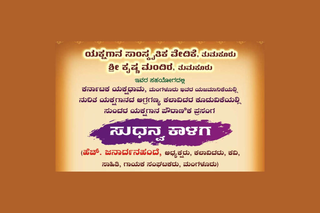 ತುಮಕೂರು : ಯಕ್ಷಗಾನ ಸಾಂಸ್ಕೃತಿಕ ವೇದಿಕೆ ತುಮಕೂರು ಮತ್ತು ಶ್ರೀ ಕೃಷ್ಣ ಮಂದಿರ ತುಮಕೂರು ಇವರ ಸಹಯೋಗದಲ್ಲಿ ‘ಸುಧನ್ವ ಕಾಳಗ’ ಯಕ್ಷಗಾನ ಬಯಲಾಟವು ದಿನಾಂಕ 28-10-2023ರ ಶನಿವಾರ ಸಂಜೆ ಘಂಟೆ 4.30ಕ್ಕೆ ತುಮಕೂರಿನ ಶ್ರೀ ಕೃಷ್ಣ ಮಂದಿರದಲ್ಲಿ ಪ್ರದರ್ಶನಗೊಳ್ಳಲಿದೆ.