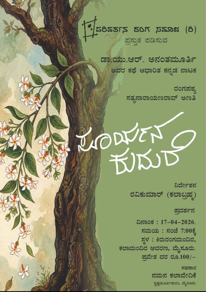 ಡಾ. ಯು.ಆರ್. ಅನಂತಮೂರ್ತಿ ಇವರ ಕಥೆ ಆಧಾರಿತ ಕನ್ನಡ ನಾಟಕಕ್ಕೆ ಸತ್ಯನಾರಾಯಣ ರಾವ್ ಅಣತಿ ರಂಗಪಠ್ಯ ನೀಡಿದ್ದು, ಮೈಸೂರು ಕೃಷ್ಣಮೂರ್ತಿಪುರಂ ಇಲ್ಲಿನ ನಮನ ಕಲಾವೇದಿಕೆಯ ಸಹಕಾರದಲ್ಲಿ ಈ ನಾಟಕ ಪ್ರದರ್ಶನ ನಡೆಯಲಿದೆ.