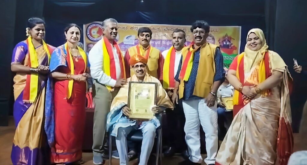 ದಿನಾಂಕ 19-11-2023ದಂದು ಶಿವಮೊಗ್ಗದ ಕರ್ನಾಟಕ ಸಭಾಭವನದಲ್ಲಿ ಕರ್ನಾಟಕ ಮರು ನಾಮಕರಣದ ಸುವರ್ಣ ಸಂಭ್ರಮದ ನಿಮಿತ್ತ ಏರ್ಪಡಿಸಲಾಗಿದ್ದ ಪಂಚ ಭಾಷಾ ಕವಿಗೋಷ್ಠಿಯಲ್ಲಿ ಈ ಪ್ರಶಸ್ತಿಯನ್ನು ನೀಡಲಾಯಿತು. ವೇದಿಕೆ ಅಧ್ಯಕ್ಷ ಕೊಟ್ರೇಶ್ ಉಪ್ಪಾರ್, ಜಿಲ್ಲಾಧ್ಯಕ್ಷೆ ಡಾ. ಹಸೀನಾ ಕೆ.ಹೆಚ್., ರಂಜಾನ್ ದರ್ಗಾ, ನಾಗರಾಜ್ ದೊಡ್ಮನಿ, ಖ್ಯಾತ ಗಜಲ್ ಕವಿ ಸಿದ್ಧರಾಮ ಹೊನ್ಕಲ್, ಮಂಗಳೂರಿನ ನ್ಯಾಯವಾದಿ ಕವಯಿತ್ರಿ ವೇದಿಕೆಯ ಉಪಾಧ್ಯಕ್ಷೆ ಶ್ರೀಮತಿ ಪರಿಮಳಾ ಮಹೇಶ್, ಉಳುವಂಗಡ ಕಾವೇರಿ ಉದಯ, ಬಿ.ಎಂ. ಬಶೀರ್, ನಾಗೇಶ್ ಎಂ. ಅನ್ವೇಕರ, ಉಳ್ಳಾಲದ ಆರಕ್ಷಕ ಇಲಾಖೆಯ ಮನ್ಸೂರ್ ಮುಲ್ಕಿ, ಲತಾ ಎಂ.ಕೆ. ತುರುವೇಕೆರೆ, ಜೆ.ಜಿ. ನರಸಿಂಹ ಮೂರ್ತಿ ಮತ್ತಿತರ ಹಲವು ಗಣ್ಯರು ಈ ಸಂಧರ್ಭದಲ್ಲಿ ಉಪಸ್ಥಿತರಿದ್ದರು.