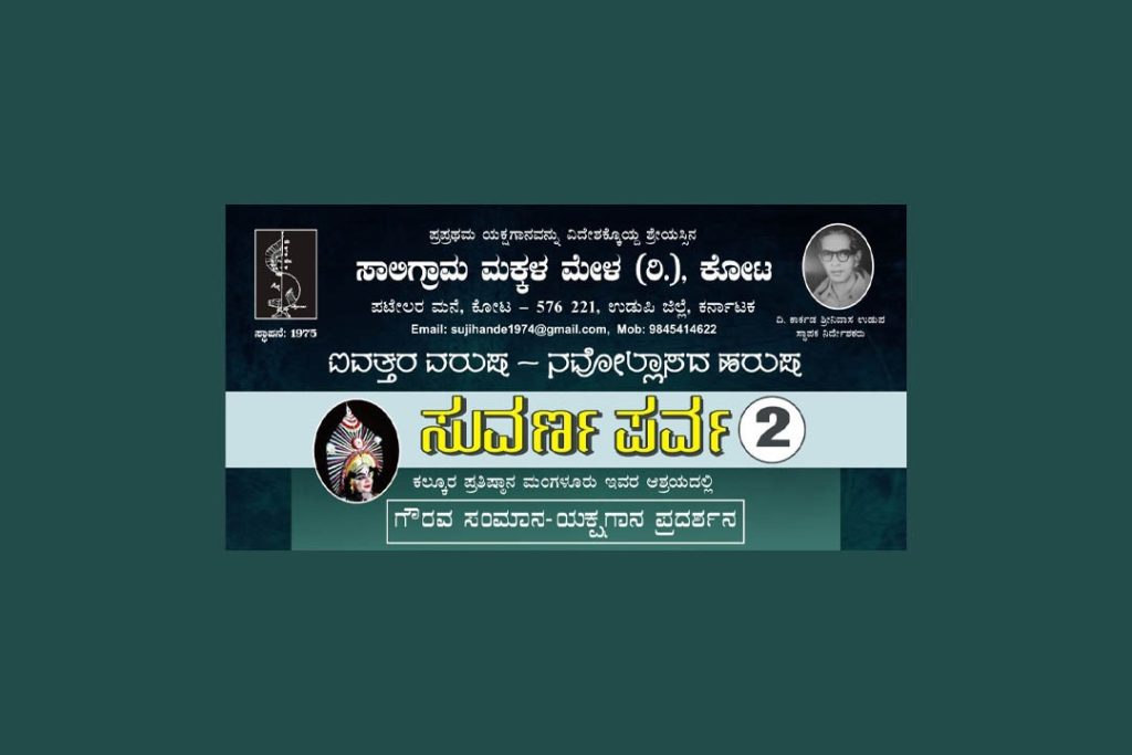 ಕೋಟ : ವಿಶ್ವ ವಿಖ್ಯಾತ ಸಾಲಿಗ್ರಾಮ ಮಕ್ಕಳ ಮೇಳ-50ರ ಸುವರ್ಣ ಪರ್ವದ ಎರಡನೆ ಕಾಯಕ್ರಮವು ಮಂಗಳೂರಿನ ಕಲ್ಕೂರ ಪ್ರತಿಷ್ಠಾನದ ಆಶ್ರಯದಲ್ಲಿ ದಿನಾಂಕ 20 ಅಕ್ಟೋಬರ್ 2024ರ ಆದಿತ್ಯವಾರ ಸಂಜೆ ಘಂಟೆ 4.30ಕ್ಕೆ ಮಂಗಳೂರಿನ ಡಾನ್ ಬಾಸ್ಕೋ ಸಭಾಂಗಣದಲ್ಲಿ ನಡೆಯಲಿದೆ.
