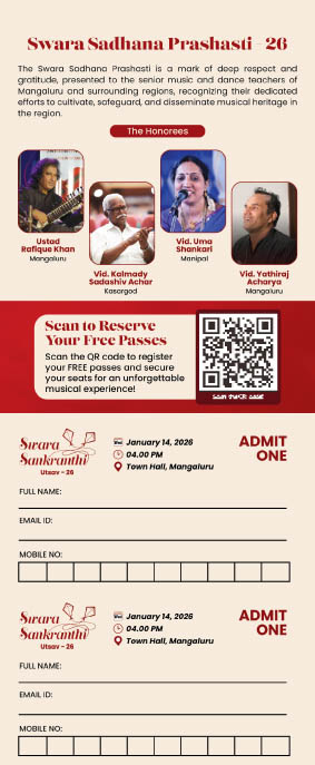 ಮಂಗಳೂರಿನ ಪುರಭವನದಲ್ಲಿ ‘ಸ್ವರ ಸಂಕ್ರಾಂತಿ’ ಹಿಂದೂಸ್ಥಾನಿ ಸಂಗೀತ ಕಛೇರಿ | ಜನವರಿ 14
