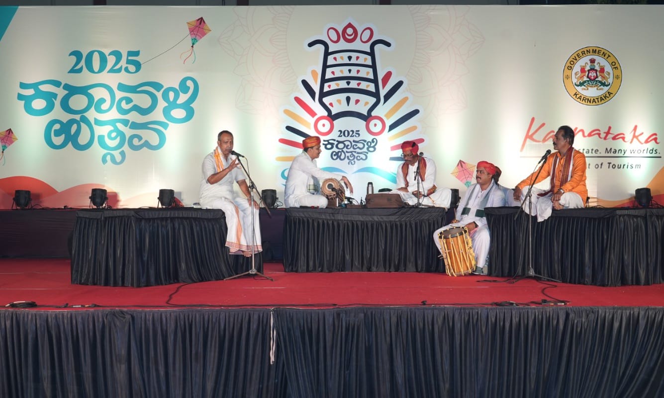 ಮಂಗಳೂರು : ದಕ್ಷಿಣ ಕನ್ನಡ ಜಿಲ್ಲಾಡಳಿತ ವತಿಯಿಂದ ಮಂಗಳೂರಿನ ಕರಾವಳಿ ಉತ್ಸವ ಮೈದಾನದಲ್ಲಿ ನಡೆಯುತ್ತಿರುವ ಜಿಲ್ಲಾ ಕರಾವಳಿ ಉತ್ಸವ – 2025 ಅಂಗವಾಗಿ ದಿನಾಂಕ 21 ಡಿಸೆಂಬರ್ 2025ರಂದು ದಕ್ಷಿಣೋತ್ತರ ಕನ್ನಡ ಜಿಲ್ಲೆಗಳ ಪ್ರಸಿದ್ಧ ಕಲಾವಿದರಿಂದ ಯಕ್ಷಗಾನ ತಾಳಮದ್ದಳೆ ಜರಗಿತು. ಪ್ರೊ. ಭಾಸ್ಕರ ರೈ ಕುಕ್ಕುವಳ್ಳಿ ನೇತೃತ್ವದ ಆಕಾಶವಾಣಿ ಮತ್ತು ದೂರದರ್ಶನ ಖ್ಯಾತಿಯ ಕರ್ನಾಟಕ ಯಕ್ಷ ಭಾರತಿ ಪುತ್ತೂರು ತಂಡವು ಕರಾವಳಿ ಉತ್ಸವದ ವಸ್ತು ಪ್ರದರ್ಶನ ವೇದಿಕೆಯಲ್ಲಿ ‘ವೀರಮಣಿ ಕಾಳಗ’ ಪ್ರಸಂಗವನ್ನು ಪ್ರಸ್ತುತಪಡಿಸಿತು.