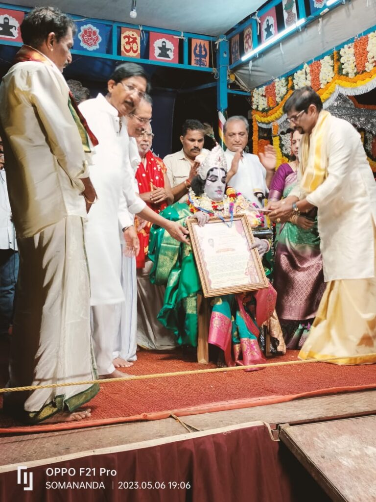 ಕಿನ್ನಿಗೋಳಿ : ತಾಳಿಪಾಡಿಗುತ್ತುವಿನಲ್ಲಿ ದಿನಾಂಕ 06-05-2023ರಂದು ಕಟೀಲು ಮೇಳದ 29ನೇ ವರ್ಷದ ಬಯಲಾಟ ಸಂದರ್ಭ ಕಟೀಲು ಮೇಳದ ಹಿರಿಯ ಕಲಾವಿದ ಅಮ್ಮುಂಜೆ ಮೋಹನ್ ಕುಮಾರ್ ಅವರನ್ನು ಚಿನ್ನದ ಪದಕ ಹಾಗೂ ಗೌರವಧನ ನೀಡಿ ಗೌರವಿಸಲಾಯಿತು.