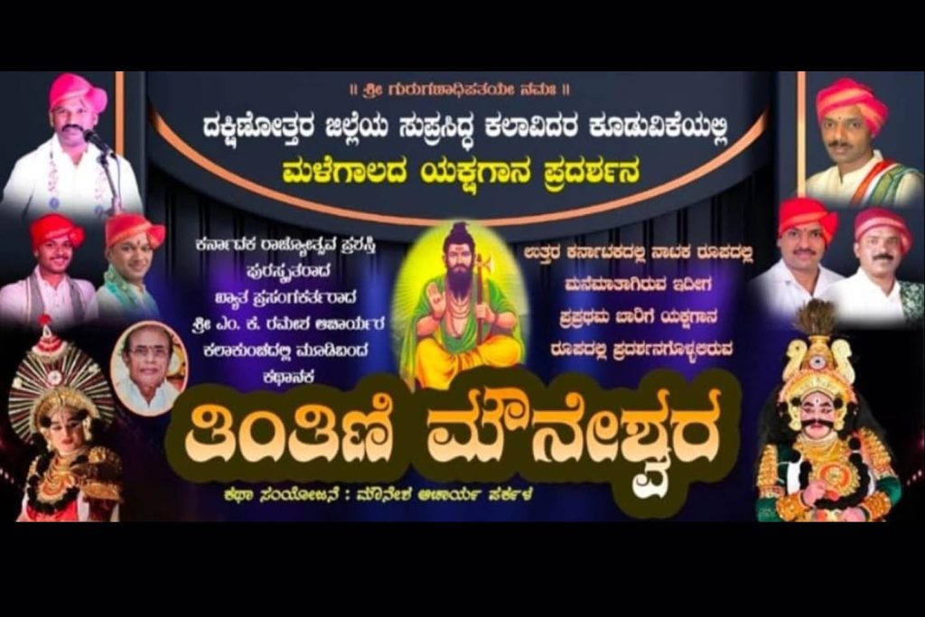 ಕರ್ನಾಟಕದ ರಾಜ್ಯೋತ್ಸವ ಪ್ರಶಸ್ತಿ ಪುರಸ್ಕೃತರಾದ ಖ್ಯಾತ ಪ್ರಸಂಗಕರ್ತರಾದ ಎಂ.ಕೆ. ರಮೇಶ ಆಚಾರ್ಯರ ಕಲಾಕುಂಚದಲ್ಲಿ ಮೂಡಿಬಂದ ಕಥಾನಕ ‘ತಿಂತಿಣಿ ಮೌನೇಶ್ವರ’ ಪ್ರಸಂಗವು ಮೌನೇಶ ಆಚಾರ್ಯ ಪರ್ಕಳ ಇವರ ಕಥಾ ಸಂಯೋಜನೆಯಲ್ಲಿ ಮೂಡಿ ಬರಲಿದೆ. ಹಿಮ್ಮೇಳದಲ್ಲಿ ಭಾಗವತರಾಗಿ ಗಾನ ಸಾರಥಿ ರಾಘವೇಂದ್ರ ಆಚಾರ್ಯ ಜನ್ಸಾಲೆ ಮತ್ತು ಕೆ.ಜೆ. ಗಣೇಶ ಆಚಾರ್ಯ, ಮದ್ದಲೆಯಲ್ಲಿ ಶಶಾಂಕ ಆಚಾರ್ಯ ಮತ್ತು ಕೆ.ಜೆ. ಸುಧೀಂದ್ರ ಆಚಾರ್ಯ ಹಾಗೂ ಚಂಡೆಯಲ್ಲಿ ಕೆ.ಜೆ. ಕೃಷ್ಣ ಆಚಾರ್ಯ, ದೀಪ್ತ ಆಚಾರ್ಯ ಮತ್ತು ಪ್ರಣೀತ ಆಚಾರ್ಯ ಇವರುಗಳು ಸಹಕರಿಸಲಿದ್ದಾರೆ. ಮುಮ್ಮೇಳದಲ್ಲಿ ಶಶಿಕಾಂತ ಶೆಟ್ಟಿ ಕಾರ್ಕಳ, ಸುಧೀರ್ ಉಪ್ಪೂರು, ಶಂಕರ ದೇವಾಡಿಗ ಉಳ್ಳೂರು, ಆನಂದ ರಾವ್ ಉಪ್ಪಿನಕುದ್ರು, ಸೀತಾರಾಮ ಕುಮಾರ್ ಕಟೀಲು, ಪ್ರಜ್ವಲ್ ಗುರುವಾಯನಕೆರೆ, ವಾಸುದೇವ ರಂಗ ಭಟ್ ಮಧೂರು, ಜಯಪ್ರಕಾಶ ಶೆಟ್ಟಿ ಪೆರ್ಮುದೆ, ಪ್ರಸನ್ನ ಶೆಟ್ಟಿಗಾರ್ ಮಂದಾರ್ತಿ, ಈಶ್ವರ ನಾಯ್ಕ್ ಮಂಕಿ, ಸುಬ್ರಹ್ಮಣ್ಯ ಗಾಣಿಗ ಕೋಣೆ, ಗುರುಪ್ರಸಾದ ಸರಳಾಯ, ಅರವಿಂದ ಆಚಾರ್ಯ ಮತ್ತು ಪ್ರಥ್ವೀಶ್ ಪರ್ಕಳ ಇವರುಗಳು ಭಾಗವಹಿಸಲಿದ್ದಾರೆ. ಇದೇ ಸಂದರ್ಭದಲ್ಲಿ ಖ್ಯಾತ ಪ್ರಸಂಗಕರ್ತರಾದ ಎಂ.ಕೆ. ರಮೇಶ ಆಚಾರ್ಯ, ಕಾಷ್ಠ ಶಿಲ್ಪಿ ಕೃಷ್ಣಯ್ಯ ಆಚಾರ್ಯ ಮತ್ತು ಶ್ರೀಮತಿ ಶ್ಯಾಮಲ ವಿ. ಶೆಟ್ಟಿ ಇವರುಗಳನ್ನು ಸನ್ಮಾನಿಸಲಾಗುವುದು.
