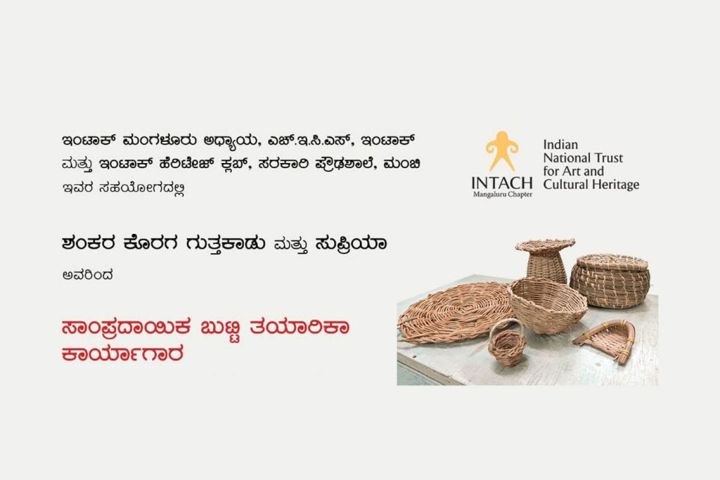 ಬಂಟ್ವಾಳ : ಇಂಟಾಕ್ ಮಂಗಳೂರು ಅಧ್ಯಾಯ, ಎಚ್.ಇ.ಸಿ.ಎಸ್. ಇಂಟಾಕ್ ಮತ್ತು ಇಂಟಾಕ್ ಹೆರಿಟೇಜ್ ಕ್ಲಬ್, ಸರಕಾರಿ ಪ್ರೌಢಶಾಲೆ, ಮಂಚಿ ಇವರ ಸಹಯೋಗದಲ್ಲಿ ಶಂಕರ ಕೊರಗ ಗುತ್ತಕಾಡು ಮತ್ತು ಸುಪ್ರಿಯಾ ಇವರಿಂದ ಶಾಲಾ ಮಕ್ಕಳಿಗಾಗಿ ಒಂದು ದಿನದ “ಸಾಂಪ್ರದಾಯಿಕ ಬುಟ್ಟಿ ತಯಾರಿಕಾ ಕಾರ್ಯಾಗಾರ”ವನ್ನು ದಿನಾಂಕ 23 ಆಗಸ್ಟ್ 2025ರಂದು ಬೆಳಿಗ್ಗೆ 09-30ರಿಂದ ಸಂಜೆ 4-00ರವರೆಗೆ ಬಂಟ್ವಾಳ ತಾಲೂಕು ಮಂಚಿ ಕೊಳ್ಳಾಡು ಸರಕಾರಿ ಪ್ರೌಢಶಾಲೆಯಲ್ಲಿ ಆಯೋಜಿಸಲಾಗಿದೆ.