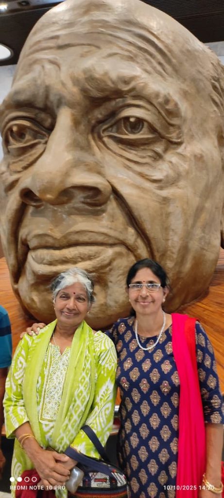 ಮುಂದೆ ನಮ್ಮ ವೇಳಾಪಟ್ಟಿಯಲ್ಲಿ ಬಾಕಿಯಿದ್ದದ್ದು 2018ರಲ್ಲಿ ವಡೋದರದಿಂದ 90 ಕಿಲೋಮೀಟರ್ ದೂರದ ಕೆವಾಡಿಯಾ (ಈಗ ಏಕತಾನಗರ)ದಲ್ಲಿ ಸ್ಥಾಪಿತವಾದ ಉಕ್ಕಿನ ಮನುಷ್ಯ ಸರ್ದಾರ ವಲ್ಲಭಭಾಯಿ ಪಟೇಲ್ ಅವರ ‘ಸ್ಟೇಚ್ಯೂ ಆಪ್ ಯೂನಿಟಿ’ ಮಾತ್ರ. ಅದನ್ನು ನೋಡಲು ನಾವು ಮೊದಲು ವಡೋದರಕ್ಕೆ ಪ್ರಯಾಣ ಬೆಳೆಸಿ ಅಲ್ಲಿ ‘ವಿಂಟೇಜ್ ಲಾಡ್ಜ್’ ನಲ್ಲಿ ರಾತ್ರಿ ಉಳಿದೆವು. ಮರುದಿನ ಶುಕ್ರವಾರ ಬೆಳಗ್ಗೆ ಒಂಭತ್ತು ಗಂಟೆಗೆ ಬಸ್ಸಿನಲ್ಲಿ ಹೊರಟು ಅಲ್ಲಿಗೆ ತಲುಪಿದೆವು. ಟಿಕೆಟ್ (ರೂ.350/-) ಮೊದಲೇ ಆನ್ ಲೈನ್ ನಲ್ಲಿ ಬುಕ್ ಮಾಡಿ ಆಗಿತ್ತು. ನಮಗೆ ಅವರು ಕೊಟ್ಟಿದ್ದ ಸಮಯ ಮಧ್ಯಾಹ್ನ 2-00ರಿಂದ 4-00 ಗಂಟೆ. ಅಲ್ಲಿಗೆ ಹೋಗಲು ಪ್ರವೇಶದ್ವಾರದಿಂದ ಅವರದ್ದೇ ಬಸ್ಸಿದೆ. ದಟ್ಟ ಕಾಡಿನ ಮಧ್ಯೆ 6 ಕಿಲೋಮೀಟರ್ ಹೋಗಬೇಕು. ಜಾಗ ತಲುಪಿದ ಕೂಲೇ ಅಲ್ಲಿ ಬಿಗಿಯಾದ ಸೆಕ್ಯೂರಿಟಿ ಇದೆ. ಚೆಕಿಂಗ್ ಎಲ್ಲ ಮಾಡಿಸಿಕೊಂಡು ಕಾರಿಡಾರಿನಲ್ಲಿ ನಾವು ತುಂಬಾ ದೂರ ನಡೆದೇ ಸಾಗಿದೆವು. ಕರೆದುಕೊಂಡು ಹೋಗಲು ಅವರದ್ದೇ ವಾಹನವೂ ಇದೆ. ಆರಂಭದ ಜಾಗದಿಂದಲೇ ಮುಂದೆ 594 ಅಡಿ ಎತ್ತರದ, ಕಬ್ಬಿಣದಿಂದ ಮಾಡಿದ ಭವ್ಯವಾದ ಸ್ಟೇಚ್ಯೂ ಕಾಣುತ್ತಿದ್ದಂತೆ ದೇಶದ ಏಕತೆಗಾಗಿ ತಮ್ಮ ಸರ್ವಸ್ವವನ್ನೂ ತ್ಯಾಗ ಮಾಡಿ ಪರಿಶ್ರಮಿಸಿದ ಪಟೇಲರ ಬಗ್ಗೆ ಅಪಾರ ಗೌರವವನ್ನು ಸದಾ ಕಾಪಿಟ್ಟುಕೊಂಡಿದ್ದ ನನ್ನ ಮನಸ್ಸು ತುಂಬಿ ಬಂತು.