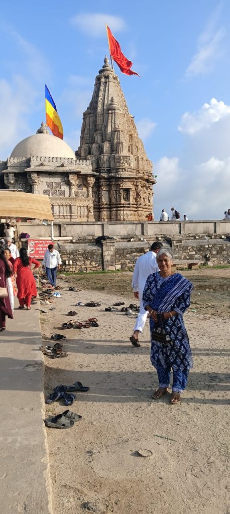 ಬೆಳಗ್ಗೆ ಎಂಟೂವರೆಯ ಹೊತ್ತಿಗೇ ರುಕ್ಮಿಣಿ ಮಂದಿರದಲ್ಲಿ ಸರತಿ ಸಾಲು ದೀರ್ಘವಾಗಿತ್ತು. ನಾವು ಸಾಲಿನಲ್ಲಿ ನಿಂತು ದೇವಸ್ಥಾನದ ಹೊರಭಾಗದ ಶಿಲ್ಪಕಲೆಯ ಸೌಂದರ್ಯವನ್ನು ಆಸ್ವಾದಿಸಿದೆವು. ದ್ವಾರಕಾಧೀಶ ದೇವಸ್ಥಾನಕ್ಕಿಂತ ಭಿನ್ನವಾಗಿ ಇಲ್ಲಿ ದೇವಾಧಿದೇವತೆಗಳು, ಸ್ತ್ರೀಯರು, ಪುರಾಣದ ಪಾತ್ರಗಳ ಶಿಲ್ಪಗಳು ಎದ್ದು ಕಾಣುತ್ತಿದ್ದವು. ಅರ್ಧಾಂಶ ಕ್ಯೂ ಮುಗಿದಾಗ ದೇವಿಗೆ ‘ಭೋಗ’ದ (ನೈವೇದ್ಯದ) ಸಮಯವಾದ್ದರಿಂದ ಮೂರ್ತಿಯ ಮುಂದೆ ಪರದೆ ಹಾಕಲಾಯಿತು. ನಾವು ಇನ್ನೂ ಸ್ವಲ್ಪ ಹೊತ್ತು ಕಾದೆವು. ಆದರೆ ರುಕ್ಮಿಣಿಯ ಸುಂದರ ಮೂರ್ತಿಯನ್ನು ನೋಡಿದಾಗ ಕಾದದ್ದು ಸಾರ್ಥಕವಾದ ಭಾವದಿಂದ ನಮ್ಮ ಮನಸ್ಸು ತುಂಬಿ ಬಂದಿತು.