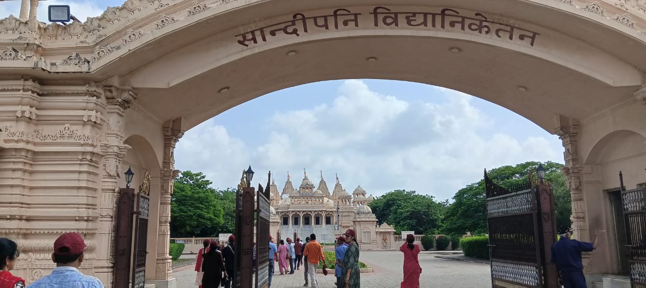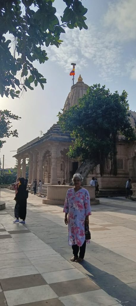 ಮರುದಿನ ಬೆಳಗ್ಗೆ ನಾವು ವೆರಾವಲ್ ನ ಪ್ರಭಾಸ ಪಟ್ಟಣದಲ್ಲಿ ಸಮುದ್ರ ತೀರದ ಸೌರಾಷ್ಟ್ರ ಪ್ರದೇಶದಲ್ಲಿರುವ ಜಗತ್ಪ್ರಸಿದ್ಧ ಸೋಮನಾಥ ದೇವಸ್ಥಾನಕ್ಕೆ ಹೊರಟೆವು. ದಾರಿಯಲ್ಲಿ ಪೋರ್ ಬಂದರಿನಿಂದ 5 ಕಿ.ಮೀ. ದೂರದಲ್ಲಿರುವ ಸಾಂದೀಪನಿ ವಿದ್ಯಾನಿಲಯದ ಅವರಣದೊಳಗಿನ ‘ಶ್ರೀಹರಿಮಂದಿರ’ ಎಂಬ ಭವ್ಯವೂ ನಯನಮನೋಹರವೂ ಆದ ದೇವಸ್ಥಾನವನ್ನು ನೋಡಿದೆವು. ಇದು ಗುಜರಾತಿನ ಅತ್ಯಂತ ದೊಡ್ಡ ಕೃಷ್ಣ ದೇವಾಲಯಗಳಲ್ಲಿ ಒಂದು. ಕುಸುರಿ ಕೆತ್ತನೆಗಳಿಂದಲೂ ಶಿಲ್ಪಕಲಾ ವಿನ್ಯಾಸಗಳಿಂದಲೂ ತುಂಬಿದ 66 ಬೃಹತ್ ಆಧಾರ ಸ್ತಂಭಗಳೂ ಮೇಲೆ ದೊಡ್ಡ ದೊಡ್ಡ ಗುಮ್ಮಟಗಳೂ ಇರುವ ಈ ಮಂದಿರದ ವಾಸ್ತುಶಿಲ್ಪ ಬಹಳ ವಿಶೇಷವಾಗಿದೆ. ರಾತ್ರಿಯ ಹೊತ್ತು ದೀಪ ಬೆಳಗಿಸಿದಾಗ ಈ ದೇವಾಲಯವು ಬಹಳ ಸುಂದರವಾಗಿ ಕಾಣುತ್ತದೆಯಂತೆ. ರಾಧಾಕೃಷ್ಣ, ಲಕ್ಮೀನಾರಾಯಣ, ಆಂಜನೇಯ ಶಿವ, ರಾಮ-ಸೀತೆ-ಲಕ್ಷ್ಮಣರ ಜತೆಗೆ ಗಣಪತಿ, ದುರ್ಗೆಯರೂ ಇಲ್ಲ ಬೇರೆ ಬೇರೆ ಗುಡಿಗಳಲ್ಲಿ ಸ್ಥಾನ ಪಡೆದಿದ್ದಾರೆ. ಅತ್ಯಂತ ಪ್ರಶಾಂತವೂ ಸ್ವಚ್ಛ ಸುಂದರವೂ ಆದ ಮಂದಿರ ಮತ್ತು ಅದರ ಪರಿಸರಗಳು ನಮ್ಮನ್ನು ಉಲ್ಲಸಿತಗೊಳಿಸಿದವು. ಅಲ್ಲಿ ತೋಟದಲ್ಲಿ ಗಾಂಧೀಜಿಯವರು ಮತ್ತು ಕಸ್ತೂರಬಾ ಜತೆಗೆ ನಿಂತ ಹೊಂಬಣ್ಣದ ಒಂದು ಸುಂದರ ಶಿಲ್ಪವಿತ್ತು. ಇನ್ನೊಂದೆಡೆ ಅದೇ ರೀತಿಯ ಶ್ರೀಕೃಷ್ಣ-ಸುದಾಮರು ಜತೆಗೆ ನಿಂತ ಶಿಲ್ಪ. ನಾವು ತೋಟದ ಒಂದು ಬದಿಯಲ್ಲಿ ನಿಂತು ಚಹ ಸೇವಿಸಿ ಮತ್ತೆ ಹೊರಟೆವು. ಇನ್ನೂ ಸ್ವಲ್ಪ ಮುಂದೆ ಹೋಗಲು ನಿರ್ವಾಹಕರು ನಮ್ಮನ್ನು ಜಾಂಬವ ಗುಹೆಗೆ ಕರೆದುಕೊಂಡು ಹೋದರು. ಬಸ್ಸಿನಲ್ಲಿ ಪ್ರಕಾಶ್ ನಮಗೆ ಶ್ಯಮಂತಕ ಮಣಿಯ ಕಥೆ ಹೇಳಿದರು. ಗುಹೆಯ ಒಳಗೆ ಇಳಿಯಬೇಕಾದರೆ ಮೆಟ್ಟಲುಗಳಿದ್ದರೂ ಅನೇಕ ಕೊರಕಲುಗಳಿದ್ದುದರಿಂದ ಹಗ್ಗ ಹಿಡಿದುಕೊಂಡು ಜಾಗ್ರತೆಯಾಗಿ ಇಳಿಯಬೇಕು. ಒಳಗೆ ತುಂಬಾ ವಿಶಾಲವಾದ ಜಾಗವಿತ್ತು. ಹಲವು ಶಿವಲಿಂಗಗಳೂ ಇದ್ದವು. ದಿನವೂ ಅಲ್ಲಿ ಹೂವು-ಮಂಡಲಗಳನ್ನು ಹಾಕಿ ದೀಪ ಹಚ್ಚಿ ಪೂಜೆ ಸಲ್ಲಿಸಲಾಗುತ್ತದೆ. ನಾವು ಗುಹೆಯೊಳಗೆ ವಿವಿಧ ಭಂಗಿಗಳಲ್ಲಿ ನಿಂತು ಫೋಟೋ ತೆಗೆಸಿಕೊಂಡೆವು. ಮೇಲೆ ಬಂದು ಮರಗಳ ನೆರಳಿನಲ್ಲಿ ಕುಳಿತು ಊಟ ಮಾಡಿದೆವು.