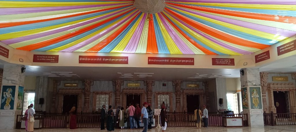 ಮಾರ್ಗದರ್ಶಕರಾಗಿ ಧಾರ್ಮಿಕ್ ಅನ್ನುವವರು ನಮ್ಮ ಜತೆ ಸೇರಿದರು. ಮೊಬೈಲ್ ಗಳನ್ನು ಒಳಗೆ ಕೊಂಡುಹೋಗುವುದು ನಿಷಿದ್ಧವಾಗಿದ್ದರಿಂದ ನಾವೆಲ್ಲರೂ ನಮ್ಮ ಮೊಬೈಲ್ ಹಾಗೂ ಷೂಗಳನ್ನು ಒಂದು ಅಂಗಡಿಯಲ್ಲಿ ಇಟ್ಟೆವು. ಧಾರ್ಮಿಕ್ ನಮಗೆ ದೇವಾಸ್ಥಾನ ಹಾಗೂ ಪರಿಸರದ ಇತರ ಪ್ರೇಕ್ಷಣೀಯ ಸ್ಥಳಗಳ ಬಗ್ಗೆ ಅವುಗಳ ಇತಿಹಾಸ ಹಾಗೂ ಅವುಗಳ ಹಿಂದೆ ಇರುವ ದಂತಕಥೆಗಳ ಬಗ್ಗೆ ವಿವರಿಸಿ ಹೇಳಿದರು. ದೇವಸ್ಥಾನವನ್ನು ಮಹಾಭಾರತ ಕಾಲದಲ್ಲೇ-ಅಂದರೆ ಸಾವಿರಾರು ವರ್ಷಗಳ ಹಿಂದೆಯೇ ಭಗವಾನ್ ಶ್ರೀಕೃಷ್ಣನ ವಂಶಕ್ಕೆ ಸೇರಿದ ರಾಜಾ ವಜ್ರನಾಥನು ಕಟ್ಟಿಸಿದನಂತೆ. 72 ಬೃಹತ್ ಕಂಬಗಳ ಮೇಲೆ ನಿಂತ ಐದು ಅಂತಸ್ತುಗಳುಳ್ಳ ಈ ದೇವಾಲಯದ ರಚನೆಯನ್ನು ಬರೇ ಮರಳುಕಲ್ಲುಗಳನ್ನು ಬಳಸಿ ಮಾಡಿದರಂತೆ. ಕಣ್ಣುಗಳು ಹೋದಲ್ಲೆಲ್ಲ ಕಂಡ ಸೂಕ್ಷ್ಮ ಕೆತ್ತನೆಗಳು ಮತ್ತು ಕುಸುರಿ ವಿನ್ಯಾಸಗಳು ದೇವಸ್ಥಾನದ ಅಂದವನ್ನು ಹೆಚ್ಚಿಸಿದ್ದವು. ಸರತಿ ಸಾಲು ಬಹಳಷ್ಟು ಉದ್ದವಿದ್ದುದರಿಂದ ದೇವರ ದರ್ಶನಕ್ಕಾಗಿ ನಾವು ಬಹಳಷ್ಟು ಕಾಯಬೇಕಾಯಿತು. ಎಲ್ಲೆಡೆ ಪ್ರಸಿದ್ಧ ಕ್ಷೇತ್ರಗಳಲ್ಲಿ ಇರುವಂತೆ ಪೋಲೀಸರು ನಮ್ಮನ್ನು ಶ್ರೀಕೃಷ್ಣನ ಮುದ್ದು ಮೂರ್ತಿಯನ್ನು ಒಂದು ಕ್ಷಣವೂ ಕಣ್ತುಂಬಿಸಿಕೊಳ್ಳಲು ಬಿಡದೆ ಓಡಿಸಿದರು. ಹೊರಗೆ ಬಂದ ನಂತರ ಗೈಡ್ ನಮ್ಮನ್ನು ಜಾಂಬವತಿ, ಸತ್ಯಭಾಮ, ಲಕ್ಷ್ಮೀನಾರಾಯಣ, ಆಂಜನೇಯ ಮೊದಲಾದ ದೇವತೆಗಳಿಗಾಗಿ ಪ್ರತಿಷ್ಠಾಪಿಸಿದ ಪುಟ್ಟ ಗುಡಿಗಳಿರುವಲ್ಲಿಗೆ ಕರೆದೊಯ್ದರು. ಈ ಎಲ್ಲ ಗುಡಿಗಳಲ್ಲಿ ಅಲಂಕೃತ ಮೂರ್ತಿಗಳು ಥಳಥಳಿಸುತ್ತಿದ್ದವು. ಅಲ್ಲಿಂದ ಮುಂದೆ ಶಾರದಾಮಠದಲ್ಲಿ ಶಾರದಾಮಾತೆಯ ಜತೆಗೆ ಶಂಕರಾಚಾರ್ಯರ ಮೂರ್ತಿ ಮತ್ತು ಓರ್ವ ಸ್ವಾಮೀಜಿಯವರ ಭಾವಚಿತ್ರವೂ ಇತ್ತು.