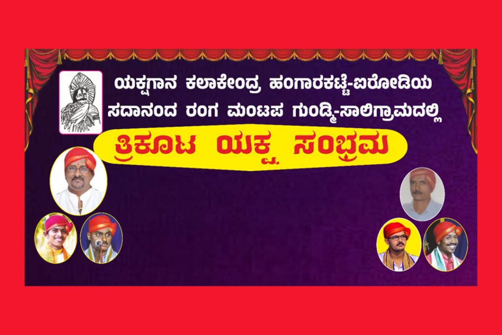 ಸಾಲಿಗ್ರಾಮ : ಯಕ್ಷಗಾನ ಕಲಾಕೇಂದ್ರ ಹಂಗಾರಕಟ್ಟೆ – ಐರೋಡಿ ಇದರ ವತಿಯಿಂದ ‘ತ್ರಿಕೂಟ ಯಕ್ಷ ಸಂಭ್ರಮ’ವನ್ನು ದಿನಾಂಕ 20ರಿಂದ 22 ಮಾರ್ಚ್ 2025ರಂದು ಸಂಜೆ 6-00 ಗಂಟೆಗೆ ಗುಂಡ್ಮಿ-ಸಾಲಿಗ್ರಾಮದ ಸದಾನಂದ ರಂಗ ಮಂಟಪದಲ್ಲಿ ಹಮ್ಮಿಕೊಳ್ಳಲಾಗಿದೆ.