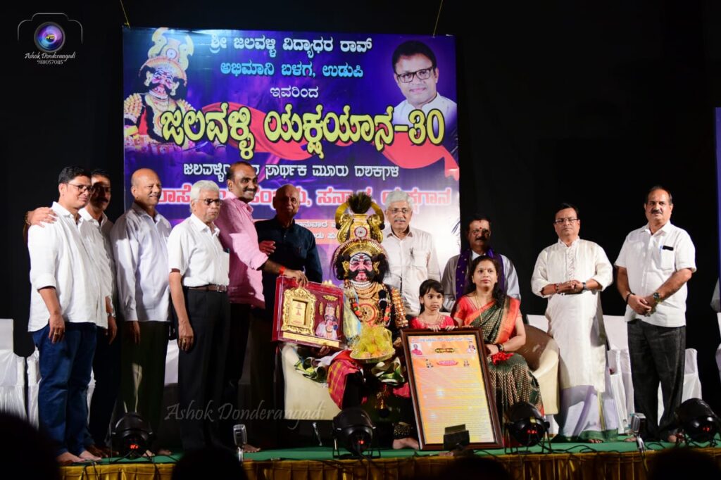 ಉಡುಪಿ : ಶ್ರೀ ಜಲವಳ್ಳಿ ವಿದ್ಯಾಧರ ರಾವ್ ಅಭಿಮಾನಿ ಬಳಗ ಉಡುಪಿ ವತಿಯಿಂದ ಅಜ್ಜರಕಾಡು ಪುರಭವನದಲ್ಲಿ ‘ಜಲವಳ್ಳಿ ಯಕ್ಷಯಾನ-30’ ಜಲವಳ್ಳಿಯವರ ಸಾರ್ಥಕ ಮೂರು ದಶಕಗಳ ಯಕ್ಷಗಾನ ಕಲಾಸೇವೆಯ ಸಂಭ್ರಮ, ಸಮ್ಮಾನ ಹಾಗೂ ಯಕ್ಷಗಾನ ಪ್ರದರ್ಶನಗಳ ಕಾರ್ಯಕ್ರಮವು ದಿನಾಂಕ 06-08-2023ರಂದು ನಡೆಯಿತು. ಇದೇ ಸಂದರ್ಭದಲ್ಲಿ ಜಲವಳ್ಳಿ ವಿದ್ಯಾಧರ ರಾವ್ ಅವರನ್ನು ಸಮ್ಮಾನಿಸಲಾಯಿತು.