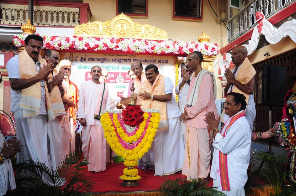 21 ಮಾರ್ಚ್ 2023, ಮಂಗಳೂರು: ಶ್ರೀ ವಾಗೀಶ್ವರೀ ಯಕ್ಷಗಾನ ಕಲಾವರ್ಧಕ ಸಂಘದ ಶತಮಾನೋತ್ಸವ ಸಮಾರಂಭದ ಸಮಾರೋಪದ ಉದ್ಘಾಟನೆ ಶ್ರೀ ಮಹಾಮಾಯಿ ದೇವಸ್ಥಾನದ ಆವರಣದಲ್ಲಿ ದಿನಾಂಕ 19-03-2023 ಆದಿತ್ಯವಾರ ಬೆಳಿಗ್ಗೆ 9 ಘಂಟೆಗೆ ಜರಗಿತು.ಶ್ರೀ ಮಹಮ್ಮಾಯಿ ದೇವಸ್ಥಾನದ ಅರ್ಚಕ ವೃಂದದಿಂದ ದೀಪ ಬೆಳಗಿಸಲಾಯಿತು.ಸಂಘದ ಕಾರ್ಯಾಧಕ್ಷ ನಾಗೇಶ್ ಪ್ರಭುಗಳ ಅಧ್ಯಕ್ಷತೆಯಲ್ಲಿ ಮಕ್ಕಳ, ಮಹಿಳೆ ಮತ್ತು ಪುರುಷರ 3 ವಿಭಾಗಗಳಲ್ಲಿ ಪೀಠಿಕಾ ಸ್ಪರ್ಧೆಯ ಉದ್ಘಾಟನೆಯನ್ನು ಇಸ್ಕಾನ್ ಮಂಗಳೂರು ವಿಭಾಗದ ಕಾರ್ಯದರ್ಶಿ ಸನಂದನ ದಾಸ ನೆರವೇರಿಸಿದರು.ತಮ್ಮ ಅನುಗ್ರಹ ಸಂದೇಶದಲ್ಲಿ ಯಕ್ಷಗಾನ ಕಲೆಯ ಔನ್ನತ್ಯವನ್ನು ವಿವರಿಸುತ್ತ ಈ ಕಲೆಯತ್ತ ಎಳೆಯ ಮಕ್ಕಳು ಇನ್ನಷ್ಟು ಆಕರ್ಷಿತಾರಾಗಬೇಕೆಂದು ಕರೆ ಇತ್ತರು.ಯಾವ ರೀತಿ ಔಷದಗಳಿಗೆ ಸಿಹಿಯ ಲೇಪನ ಮಾಡಿದಾಗ ಸೇವಿಸುವುದಕ್ಕೆಆಹ್ಲಾದವಾಗುತ್ತದೋ, ಹಾಗೆಯೇ ಯಕ್ಷಗಾನವು ಮನರಂಜನೆಯೊಂದಿಗೆ ಮಧುರವಾದ ಸಂಗೀತ, ಪಾಂಡಿತ್ಯಪೂರ್ಣ ಪುರಾಣ ಜ್ಞಾನ ನೀಡುವ ಕಲೆ. ಈ ಕಲೆಯ ಪ್ರಚಾರ ಮಾಡುತ್ತಿರುವ ಇಂತಹ ಸಂಘಗಳು ಇನ್ನಷ್ಟು ಕಾಲ ಉಳಿಯಬೇಕೆಂದು ಹಾರೈಸಿದರು.