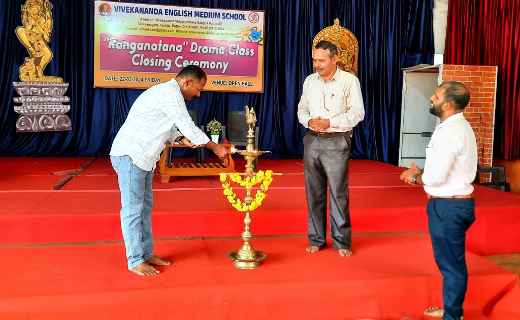 ಪುತ್ತೂರು: ಪುತ್ತೂರಿನ ತೆಂಕಿಲ ವಿವೇಕಾನಂದ ಆಂಗ್ಲ ಮಾಧ್ಯಮ ಶಾಲೆಯಲ್ಲಿ ನಡೆದ ನಾಟಕ ತರಬೇತಿ ‘ರಂಗ ನಟನಾ’ ಇದರ ಸಮಾರೋಪ ಸಮಾರಂಭ ದಿನಾಂಕ 22-03-2024ರ ಶುಕ್ರವಾರದಂದು ನಡೆಯಿತು.