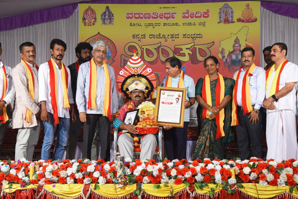 ಉಡುಪಿ : ಕೋಟದ ನೂತನ ವರುಣತೀರ್ಥ ವೇದಿಕೆಯು ‘ನಿರಂತರ’ ಎಂಬ ಶೀರ್ಷಿಕೆಯಡಿಯಲ್ಲಿ ಹಮ್ಮಿಕೊಂಡ ಕನ್ನಡ ರಾಜ್ಯೋತ್ಸವದ ಕಾರ್ಯಕ್ರಮವು ದಿನಾಂಕ 01-11-2023ರಂದು ನಡೆಯಿತು. ಈ ಕಾರ್ಯಕ್ರಮದಲ್ಲಿ ‘ವರುಣತೀರ್ಥ ರಾಜ್ಯೋತ್ಸವ ಪುರಸ್ಕಾರ’ವನ್ನು ಸ್ವೀಕರಿಸಿದ ಉಪನ್ಯಾಸಕ, ಕಲಾವಿದ, ಗಮಕಿ ಎಚ್. ಸುಜಯೀಂದ್ರ ಹಂದೆ ಅವರು ಮಾತನಾಡುತ್ತಾ “ನಾಡು ನುಡಿಗಳ ಚಿಂತನೆ ಕೇವಲ ಭಾವನಾತ್ಮಕವಾಗಿದ್ದರೆ ಸಾಲದು, ಅದು ಕ್ರಿಯಾತ್ಮಕವಾಗಿದ್ದಾಗ ಮಾತ್ರ ಉಳಿವು ಬೆಳೆವು ಸಾಧ್ಯ. ಜಾತಿ ಮತ ಧರ್ಮವನ್ನು ಮೀರಿ, ಈರ್ಷ್ಯೆ, ದ್ವೇಷ, ಅಸೂಯೆಗಳನ್ನು ದಾಟಿ ನಿಂತ ಸಂಘ ಸಂಸ್ಥೆಗಳೇ ಈ ದೇಶದ ನಿಜವಾದ ಸಂಪತ್ತು. ಪ್ರಶಸ್ತಿ ಮತ್ತು ಪುರಸ್ಕಾರಗಳೆರಡೂ ಒಂದೇ ಅಲ್ಲಾ, ಸಾಧನೆ ಮಾಡಿದವನನ್ನು ಪ್ರಶಸ್ತಿಗಳು ಅರಸಿ ಬಂದರೆ, ಸಾಧನೆಯ ಪಥದಲ್ಲಿರುವವನನ್ನು ಗುರುತಿಸಿ ಬೆನ್ನುತಟ್ಟುವುದೇ ಪುರಸ್ಕಾರ. ನನ್ನೂರಿನ ಪ್ರೀತಿಯ ಆಶೀರ್ವಾದ ಸ್ವರೂಪದ ಈ ರಾಜ್ಯೋತ್ಸವ ಪುರಸ್ಕಾರವು ಮುಂದಿನ ದಿನಗಳಲ್ಲಿ ನಾನು ಸಾಧಿಸಬೇಕಾದ ವಿಸ್ತಾರವನ್ನು ಬೊಟ್ಟುಮಾಡಿ ತೋರಿಸಿದೆ.” ಎಂದು ಹೇಳಿದರು.