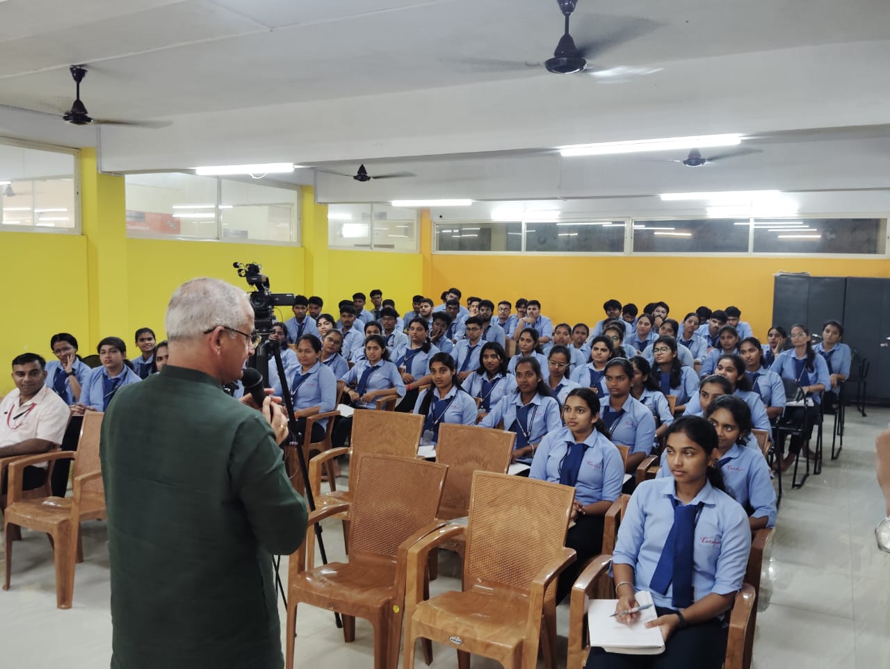 ಕಾರ್ಯಕ್ರಮದಲ್ಲಿ “ಆತ್ಮವಿಶ್ವಾಸ ಮತ್ತು ಧೈರ್ಯದ ಹಾದಿಯಲ್ಲಿ ಜಾಗೃತರಾಗಿ ಮತ್ತು ಚೈತನ್ಯಭರಿತರಾಗಿ” ಎಂಬ ವಿಷಯದ ಕುರಿತು ಮಾತನಾಡಿದ ಭಾರತೀಯ ಸೇನೆಯ ನಿವೃತ ಯೋಧರಾದ ಕ್ಯಾಪ್ಟನ್ ಗಣೇಶ್ ಕಾರ್ಣಿಕ್ “ಜೀವನದಲ್ಲಿ ಯಶಸ್ಸು ಸಾಧಿಸಲು ಅಗತ್ಯವಾದ ಎರಡು ಮಹತ್ವದ ಶಕ್ತಿಗಳು – ಆತ್ಮವಿಶ್ವಾಸ ಮತ್ತು ಧೈರ್ಯ. ಆತ್ಮವಿಶ್ವಾಸವಿಲ್ಲದೆ ಯಾರೂ ಜೀವನದಲ್ಲಿ ಮುಂದೆ ಸಾಗಲು ಸಾಧ್ಯವಿಲ್ಲ. ಧೈರ್ಯವಿಲ್ಲದೆ ಯಾವುದೇ ಗುರಿ ಸಾಧಿಸಲಾಗದು. ಸ್ವಾಮಿ ವಿವೇಕಾನಂದರು ಹೇಳಿದಂತೆ “Education is the manifestation of perfection already within you” — ಅಂದರೆ ಪರಿಪೂರ್ಣತೆ ನಮ್ಮೊಳಗೇ ಇದೆ, ಅದನ್ನು ಹೊರತರುವುದು ಶಿಕ್ಷಣದ ಉದ್ದೇಶ. ಈ ನಂಬಿಕೆಯೇ ಆತ್ಮವಿಶ್ವಾಸದ ಮೂಲ. ಯುವಕರು ತಮ್ಮೊಳಗಿನ ಶಕ್ತಿಯನ್ನು ಅರಿತು, ಅಜ್ಞಾನ, ಭಯ ಮತ್ತು ನಕಾರಾತ್ಮಕ ಚಿಂತನೆಗಳ ವಿರುದ್ಧ ಹೋರಾಡಬೇಕು -ಇದೇ “ಶತ್ರುಬುದ್ಧಿ ವಿನಾಶಾಯ”. ಜೀವನದ ಸವಾಲುಗಳು ಅಡ್ಡಿ ಅಲ್ಲ; ಅವು ನಮ್ಮ ಧೈರ್ಯವನ್ನು ಪರೀಕ್ಷಿಸುವ ಅವಕಾಶಗಳು. ಧೈರ್ಯಶಾಲಿಯಾಗಿರುವವರು ಎಂದಿಗೂ ಸೋಲುವುದಿಲ್ಲ, ಏಕೆಂದರೆ ಅವರು ತಮ್ಮ ಮನಸ್ಸನ್ನು ಗೆದ್ದಿರುತ್ತಾರೆ. ವಿವೇಕಾನಂದರು ಹೇಳಿದಂತೆ – “ಎದ್ದೇಳಿ! ಜಾಗೃತರಾಗಿ! ಗುರಿ ಸಾಧನೆಯವರೆಗೆ ನಿಲ್ಲಬೇಡಿ.” ಈ ಮಾತು ಪ್ರತಿಯೊಬ್ಬ ಯುವಕನ ಜೀವನದ ದೀಪವಾಗಬೇಕು. ಜೀವನದ ನಿಜವಾದ ಅರ್ಥ ‘ಸ್ವಂತಕ್ಕಷ್ಟೇ ಬದುಕುವುದು’ ಅಲ್ಲ; “They alone live who live for others” ಎಂಬ ತತ್ವದ ಪ್ರಕಾರ, ಇತರರ ಹಿತಕ್ಕಾಗಿ ಬದುಕುವವರೇ ನಿಜವಾಗಿ ಜೀವಂತರು. ಆತ್ಮವಿಶ್ವಾಸ ಮತ್ತು ಧೈರ್ಯದ ಹಾದಿಯಲ್ಲಿ ಸಾಗುವ ಯುವಕರು ತಮ್ಮೊಳಗಿನ ಶಕ್ತಿಯನ್ನು ಅರಿತು, ಸಮಾಜದ ಬೆಳಕಾಗುತ್ತಾರೆ. ಇಂತಹ ಯುವ ಚೈತನ್ಯವೇ ನಾಡಿನ ಭವಿಷ್ಯವನ್ನು ನಿರ್ಮಿಸುತ್ತದೆ” ಎಂದುರು.