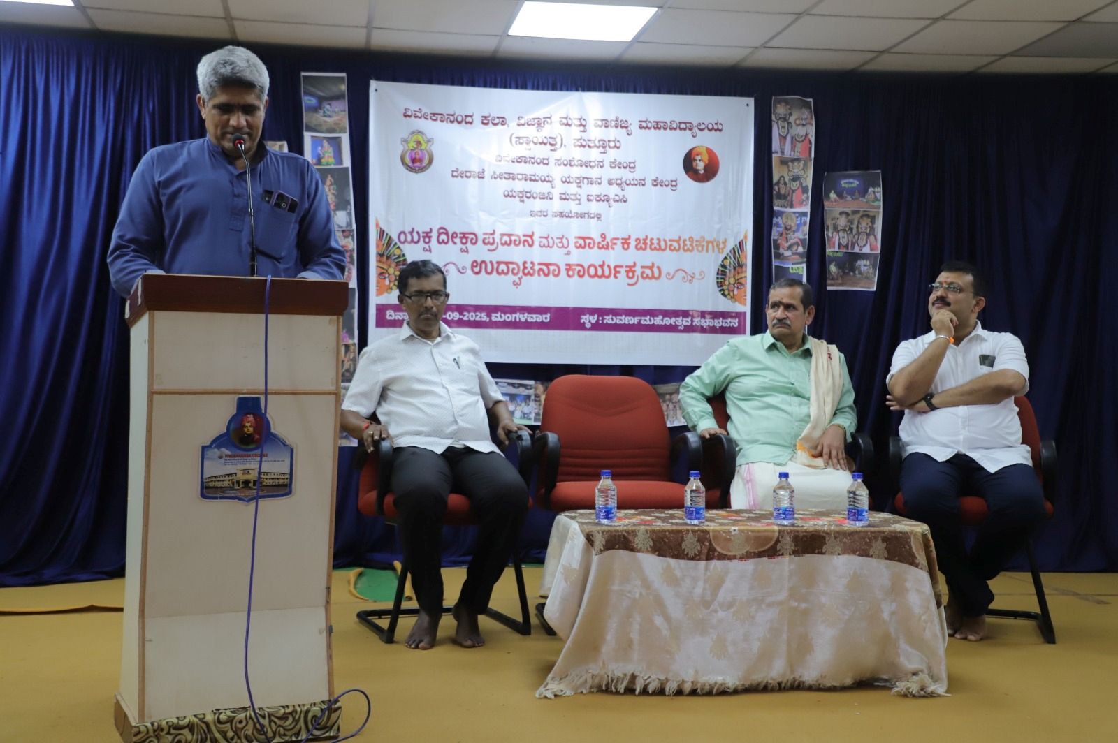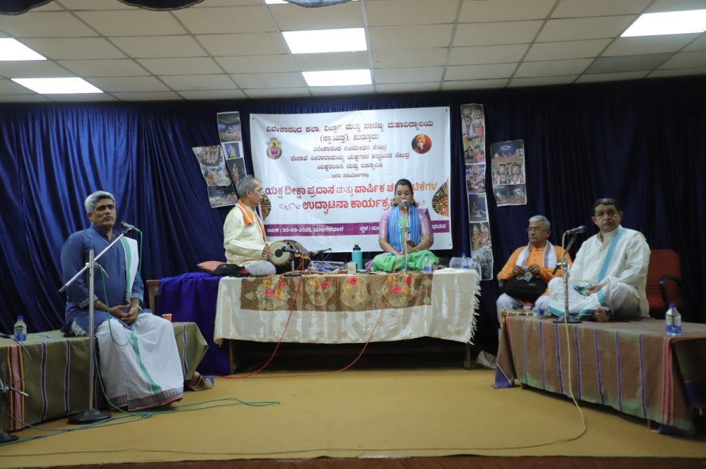 ಪುತ್ತೂರು : ಪುತ್ತೂರಿನ ವಿವೇಕಾನಂದ ಕಲಾ, ವಿಜ್ಞಾನ, ವಾಣಿಜ್ಯ ಮಹಾವಿದ್ಯಾಲಯ (ಸ್ವಾಯತ್ತ) ಇಲ್ಲಿ ದೇರಾಜೆ ಸೀತಾರಾಮಯ್ಯ ಯಕ್ಷಗಾನ ಅಧ್ಯಯನ ಕೇಂದ್ರ, ವಿವೇಕಾನಂದ ಸಂಶೋಧನಾ ಕೇಂದ್ರ, ಯಕ್ಷರಂಜಿನಿ ಘಟಕ ಹಾಗೂ ಐಕ್ಯೂಎಸಿಯ ಸಹಯೋಗದಲ್ಲಿ ಯಕ್ಷ ದೀಕ್ಷಾ ಪ್ರದಾನ ಹಾಗೂ ಯಕ್ಷರಂಜಿನಿ ಘಟಕದ ವಾರ್ಷಿಕ ಚಟುವಟಿಕೆಗಳ ಉದ್ಘಾಟನೆಯು ದಿನಾಂಕ 30 ಸೆಪ್ಟೆಂಬರ್ 2025ರಂದು ಸುವರ್ಣ ಮಹೋತ್ಸವ ಸಭಾಭವನದಲ್ಲಿ ನಡೆಯಿತು.