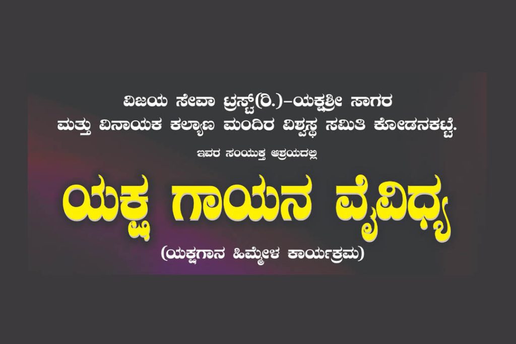 ಸೊರಬ : ವಿಜಯ ಸೇವಾ ಟ್ರಸ್ಟ್ (ರಿ.), ಯಕ್ಷಶ್ರೀ ಸಾಗರ ಮತ್ತು ವಿನಾಯಕ ಕಲ್ಯಾಣ ಮಂದಿರ ವಿಶ್ವಸ್ಥ ಸಮಿತಿ ಕೋಡನಕಟ್ಟೆ ಇವರ ಸಂಯುಕ್ತ ಆಶ್ರಯದಲ್ಲಿ ‘ಯಕ್ಷ ಗಾಯನ ವೈವಿಧ್ಯ’ ಯಕ್ಷಗಾನ ಹಿಮ್ಮೇಳ ಕಾರ್ಯಕ್ರಮವನ್ನು ದಿನಾಂಕ 29 ಸೆಪ್ಟೆಂಬರ್ 2025ರಂದು ಮಧ್ಯಾಹ್ನ 3-30 ಗಂಟೆಗೆ ಸೊರಬ ತಾಲೂಕಿನ ಕೋಡನಕಟ್ಟೆಯಲ್ಲಿರುವ ವಿನಾಯಕ ಕಲ್ಯಾಣ ಮಂದಿರದಲ್ಲಿ ಹಮ್ಮಿಕೊಳ್ಳಲಾಗಿದೆ.