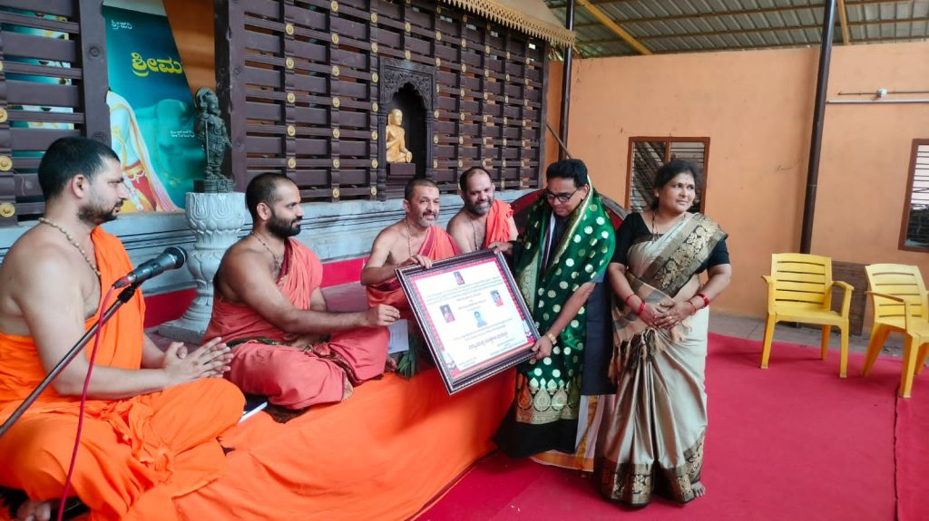 ಉಡುಪಿ : ಪಲಿಮಾರು ಶ್ರೀ ಶ್ರೀ ವಿದ್ಯಾಧೀಶತೀರ್ಥ ಶ್ರೀಪಾದರು ತಮ್ಮ ಗುರುಗಳಾದ ಶ್ರೀ ವಿದ್ಯಾಮಾನ್ಯ ಶ್ರೀಪಾದರ ಹೆಸರಿನಲ್ಲಿ ಪ್ರತೀವರ್ಷ ಕೊಡಮಾಡುವ ‘ಶ್ರೀ ವಿದ್ಯಾಮಾನ್ಯ ಯಕ್ಷಕಲಾ’ ಪ್ರಶಸ್ತಿಯನ್ನು ಬಡಗುತಿಟ್ಟಿನ ಶ್ರೇಷ್ಠ ಕಲಾವಿದ ಕೊಂಡದಕುಳಿ ರಾಮಚಂದ್ರ ಹೆಗಡೆಯವರಿಗೆ ದಿನಾಂಕ 23-04-2024 ರಂದು ಪಲಿಮಾರಿನಲ್ಲಿ ನಡೆದ ಹನುಮ ಜಯಂತಿಯ ಸಂದರ್ಭದಲ್ಲಿ ಪ್ರದಾನ ಮಾಡಿದರು. ಈ ಪ್ರಶಸ್ತಿಯು 50,000/- ನಗದು ಪುರಸ್ಕಾರಗಳನ್ನೊಳಗೊಂಡಿದೆ.