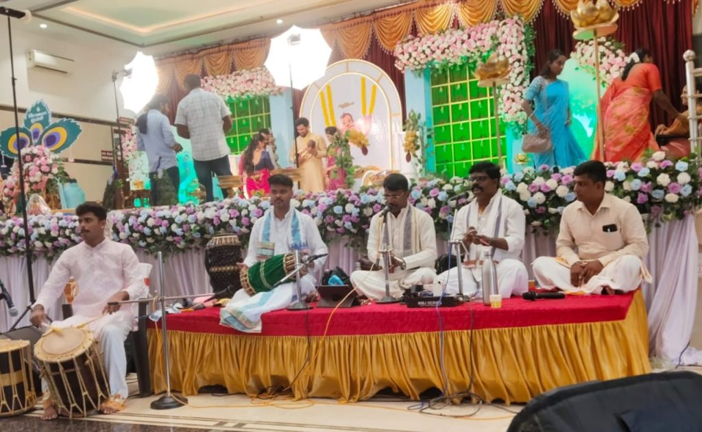 ಕುಂದಾಪುರ : ಮಗುವಿನ ನಾಮಕರಣದ ಪ್ರಯುಕ್ತ ಕುಂದಾಪುರ ತಾಲೂಕಿನ ಹಾಲಾಡಿಯ ಜಿ. ಶಂಕರ್ ಶಾಲಿನಿ ಸಭಾಂಗಣದಲ್ಲಿ ದಿನಾಂಕ 16 ಜುಲೈ 2025ರಂದು ಯಕ್ಷಗಾನ ಗಾನವೈಭವ ಕಾರ್ಯಕ್ರಮ ಆಯೋಜಿಸಿದ್ದರು. ಪ್ರಸಿದ್ಧ ಕಾಷ್ಠಶಿಲ್ಪಿ ನರಸಿಂಹ ಆಚಾರ್ಯರು ತಮ್ಮ ಪುಟ್ಟ ಮೊಮ್ಮಗಳ ನಾಮಕರಣಕ್ಕಾಗಿ ಜನ್ಸಾಲೆ ರಾಘವೇಂದ್ರ ಆಚಾರ್ಯರ ಸಾರಥ್ಯದಲ್ಲಿ ಗಾನವೈಭವ ಸಂಯೋಜಿಸಿದ್ದರು. ಯಕ್ಷಗಾನಲೋಕದ ಕುಚ್ಚಿಕೂ ಗೆಳೆಯರಾದ ಜನ್ಸಾಲೆ ರಾಘವೇಂದ್ರ ಆಚಾರ್ಯ ಹಾಗೂ ಪ್ರಸಾದ್ ಕುಮಾರ್ ಮೊಗೆಬೆಟ್ಟು ಭಾಗವತಿಕೆಯಲ್ಲಿದ್ದರೆ, ಮದ್ದಳೆಯಲ್ಲಿ ಶಶಾಂಕ ಆಚಾರ್ಯ, ಚಂಡೆಯಲ್ಲಿ ಪ್ರಜ್ವಲ್ ಮುಂಡಾಡಿ ಸಹಕರಿಸಿದ್ದರು. ಯುವ ಅರ್ಥಧಾರಿ, ಕಲಾವಿದ ಸುನಿಲ್ ಹೊಲಾಡು ನಿರೂಪಣೆಯಲ್ಲಿದ್ದರು.