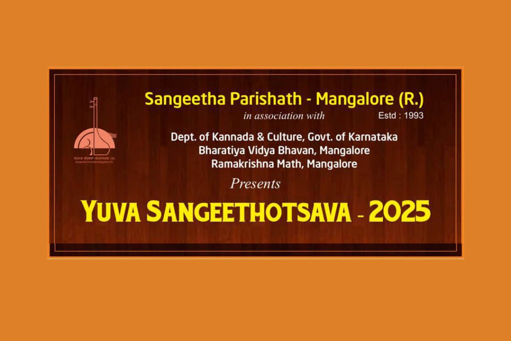 ಮಂಗಳೂರು : ಸಂಗೀತ ಪರಿಷತ್ ಮಂಗಳೂರು ಇದರ ವತಿಯಿಂದ ಕರ್ನಾಟಕ ಸರ್ಕಾರದ ಕನ್ನಡ ಮತ್ತು ಸಂಸ್ಕೃತಿ ಇಲಾಖೆ, ಭಾರತೀಯ ವಿದ್ಯಾಭವನ ಮತ್ತು ರಾಮಕೃಷ್ಣಮಠ ಇವುಗಳ ಸಹಯೋಗದೊಂದಿಗೆ ಪ್ರಸ್ತುತ ಪಡಿಸುವ ‘ಯುವ ಸಂಗೀತೋತ್ಸವ 2025’ವನ್ನು ಮಂಗಳೂರಿನ ಮಂಗಳಾದೇವಿಯಲ್ಲಿರುವ ರಾಮಕೃಷ್ಣ ಮಠದ ಸ್ವಾಮಿ ವಿವೇಕಾನಂದ ಸಭಾಭವನದಲ್ಲಿ ದಿನಾಂಕ 25 ಮೇ 2025ರಂದು ಆಯೋಜಿಸಲಾಗಿದೆ.